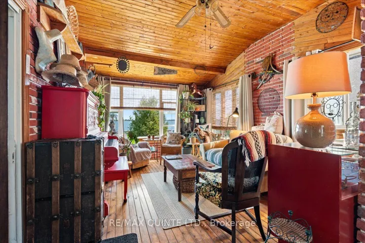 +"PublicRemarks": "Imagine waking up to breathtaking views across Adolphus Reach and spending your days immersed in the peaceful beauty of rural Ontario. This charming 1.5 storey Century Home offers over an acre of lush, private land perfectly situated within easy driving distance to the vibrant communities of Napanee, Kingston, and Picton. Whether you're seeking a weekend retreat or a full-time sanctuary, this property invites you to experience the true essence of country living, complete with your own grape vines and fruit trees. This lovingly maintained home boasts approximately 1,500 square feet of character-filled living space. Artistic touches abound, from warm wooden floors to unique architectural details and inviting nooks. Large, sun-drenched windows frame captivating water and garden views throughout, flooding every room with natural light and inspiration. One level living is possible here with main floor Primary Bedroom, full bathroom, laundry and living areas. Upon entering, a cozy family room with windows that showcase lake views leads you into an additional living area featuring a wood-burning stove. The dining room and the bright kitchen are spacious and inviting. An adjoining breakfast nook opens onto the back deck for seamless indoor-outdoor flow. A main floor, 4 piece bathroom has a free-standing soaker tub and glass shower. Upstairs are 2 more bedrooms, both with incredible water views and they share another full bathroom. Outdoors there is an array of deck spaces, gardens, gazebo, garden shed and another outbuilding to house your crafts or to store your hobbies. Waterfront can be accessed across the road where there are steps to the waterfront. This home is just 15 minutes to Napanee and 30 minutes to Kingston and a short ferry ride to Picton."
