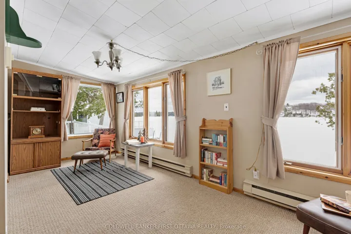 +"PublicRemarks": "Enjoy life on the shores of picturesque Patterson Lake, while investing in your future. On 1.6 lovely treed acres, this comfy bungalow-home offers you the opportunity to add value and build equity - while watching the lake lap against the shoreline. This three bedroom, 1.5 bathroom home, or all season retreat, also has two garages, one with a workshop. The home's large welcoming BBQ-sized deck has patio doors opening to light-filled living room with woodstove. Adjacent to the living room is full-length sitting room with wall of windows for panoramic never-ending lake views. From the living room, a wide opening takes you into the sunny kitchen with oak cabinetry, desk nook and ceramic floor. The primary bedroom has 4-pc ensuite with combined tub and rainhead shower. Two more bedrooms, a powder room and laundry room with washer, dryer plus lots of storage cupboards. At the waterfront, you have boathouse and on upper level is large bunkie. This guest bunkie has two bedrooms, electric baseboard heating and patio doors to its deck with mesmerizing unobstructed views of the lake. The hobbyist and car enthusiast will appreciate the detached big double garage-workshop that's insulated, has 250V, concrete floor and two drive-thru garage doors with auto garage door opener. The detached single garage includes good-size storage shed. Huge coverall-shed for more storage and projects. Internet & cell service available. Just down the road 10 mins is the Purdon Conservation Area known for its beautiful Showy Lady's Slipper orchids and natural heritage site. Located on private road with Patterson Lake Rd Association overseeing the maintenance & snowplowing of the road; resident fee is $400/year. 15 mins to Lanark, 30 mins Perth or 1 hr Kanata."