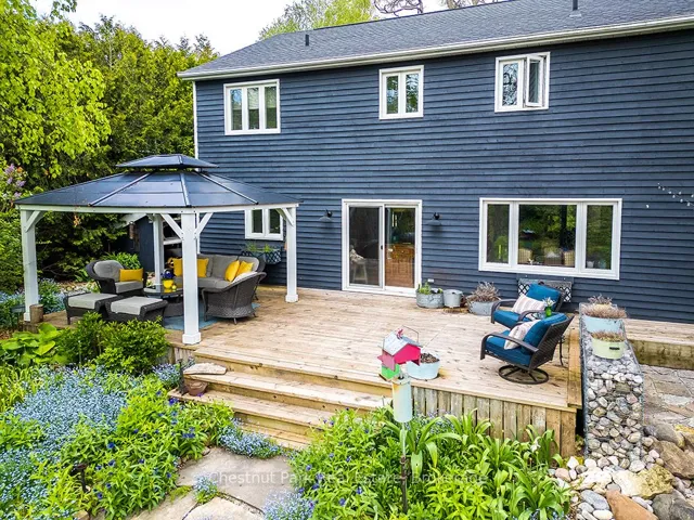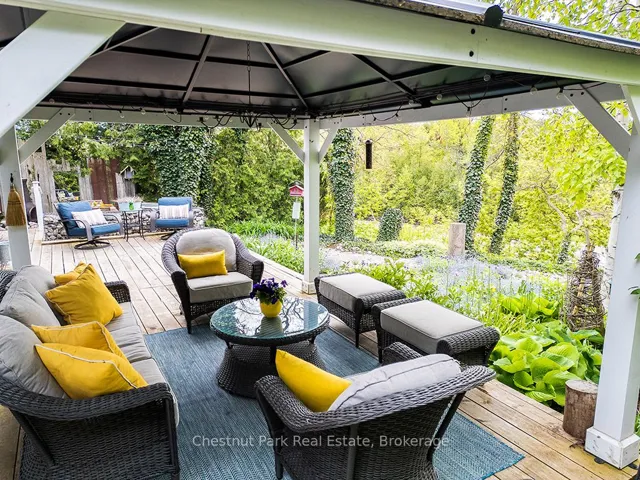 +"PublicRemarks": "Charming Cape Cod Home on the Beaver River! 114 Clark Street, Clarksburg. Welcome to this idyllic 2658 sq ft 4-bedroom, 3-bathroom Cape Cod-style home perfectly nestled on the banks of the serene Beaver River in the heart of Clarksburg. Set on a beautifully landscaped lot, this property is a true retreat, featuring an enchanting English garden and thoughtfully designed outdoor spaces ideal for alfresco dining under the stars. Step inside to discover a warm and inviting interior where comfort meets character. The main floor offers a spacious open-concept layout with a cozy wood-burning fireplace, ideal for family gatherings or quiet evenings at home. Large windows throughout frame stunning river views, bringing the outdoors in and filling each room with natural light. The country-style, Pinetiques kitchen offers charm and functionality, the adjoining outdoor lounge area offers the perfect setting for enjoying your morning coffee or evening glass of wine, accompanied by the gentle sound of the flowing river. Upstairs, three generous bedrooms provide plenty of space for family and guests, and the two well-appointed bathrooms offer both convenience and privacy. Outside, the magic continues with lush perennial gardens, mature trees, and a private outdoor dining area overlooking the river an entertainers dream. Paddleboards, kayaks, and nature await just steps from your backyard. Located within walking distance to Clarksburg's art galleries, shops, the Clendenan Dam trail system, and only minutes from Thornbury's amenities and Georgian Bay, this property offers a rare blend of peaceful living and vibrant community access. Don't miss the opportunity to make this riverfront gem your forever home."