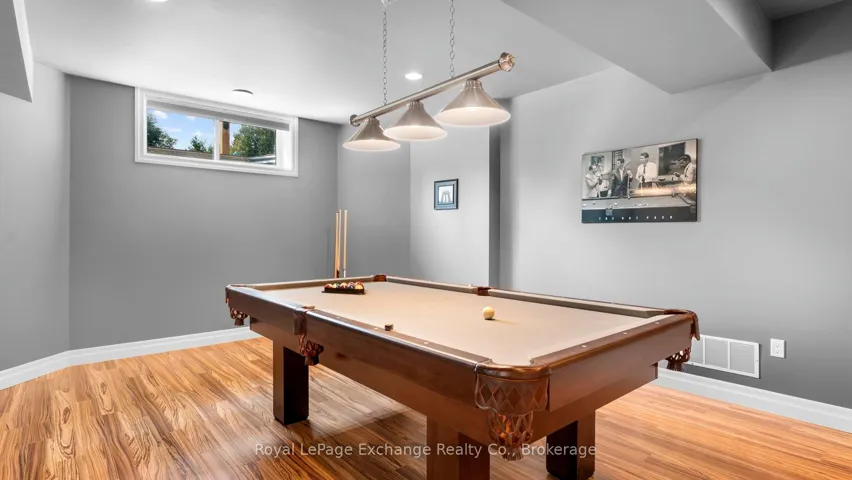 +"PublicRemarks": "Under the Kincardine sun in the desirable Hunter's Ridge community, you'll find this meticulously maintained terracotta beauty. Tucked away on a quiet cul-de-sac, this two-storey family home offers exceptional privacy with a spacious, green backyard that backs onto a peaceful ravine. Step through the front door and immediately feel the pride of ownership throughout. The home offers a wonderful flow from front to back, beginning with the bright living room and kitchen, both featuring large windows that fill the space with natural light. The open-concept design leads seamlessly outside to a poured concrete patio. Perfect for entertaining, complete with a pergola and even a private putting green to keep your short game sharp. The kitchen is beautifully appointed with rich cherry cabinetry, sleek granite countertops, an induction stove, and stainless steel appliances. Convenience is key with a main floor laundry room and a clever laundry chute from the primary bedroom, making everyday living that much easier. Upstairs, you'll find three bedrooms and a custom 3-piece bathroom. The primary suite is a true retreat, featuring a custom dressing room, a stunning ensuite, and its own private walk-out balcony. The lower level continues to impress with a media room, games area, and a dedicated fitness corner. The garage also provides direct access to the lower level, along with an additional 3-piece bathroom for added convenience. This property is truly a showpiece and must be seen to be fully appreciated. Contact your REALTOR today to schedule a viewing."