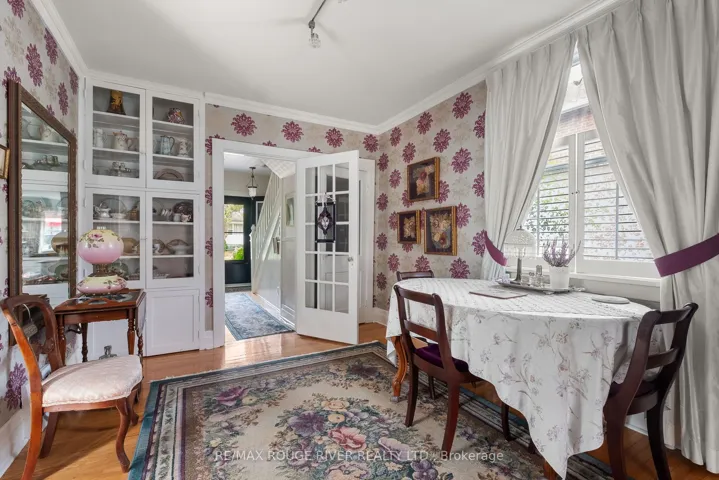 +"PublicRemarks": "Nestled along sought-after Chapel Street in the heart of Cobourg's historic downtown, this charming 1930s "Jackson"-style home offers a rare blend of character, comfort, and lifestyle. From the moment you arrive, the whimsical, storybook gardens create an enchanting first impression, perfectly framing the home's timeless appeal. The inviting front porch is an ideal spot to relax and watch the rhythm of the neighbourhood unfold.Inside, warmth and functionality meet classic charm. The spacious living room is centered around a cozy gas fireplace-perfect for holiday stockings and cherished family moments. A thoughtfully designed rear addition features a bright, updated kitchen and a convenient three-piece bathroom, with direct access to a tiered backyard deck. Step outside to enjoy lush gardens and a delightful hobby shed, creating your own private retreat.The main floor also boasts a generous dining room with original built-in cabinetry, adding both character and practicality. Upstairs, you'll find three comfortable bedrooms-two with large closets-and a beautifully appointed bathroom complete with a clawfoot tub, ideal for unwinding at the end of the day.Additional space in the lower level provides room for hobbies, storage, or future possibilities.This is more than a home-it's a lifestyle. Enjoy leisurely walks to the beach, just a few blocks away, Saturday mornings at the farmers' market, and easy access to Cobourg's vibrant downtown cafés and restaurants. A truly special place to call home, where every day feels a little more inspired"