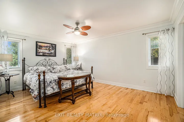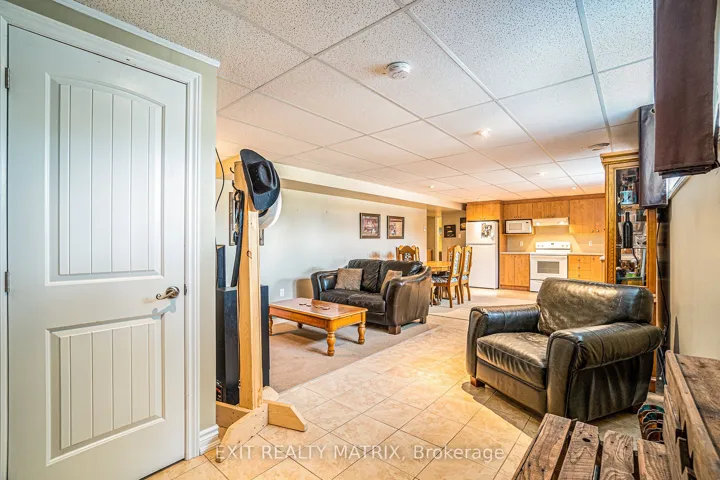 +"PublicRemarks": "This exquisite bungalow offers the perfect blend of comfort and luxury. The open-concept main level showcases hardwood floors and large windows throughout, filling the space with natural light. A cozy living room, elegant dining area, and chef's kitchen with stainless steel appliances and a sit-at peninsula create a warm, inviting atmosphere. Two well-appointed bedrooms and a renovated 4-piece bathroom provide both style and function, while the primary bedroom features dual walk-in closets for a true retreat. A laundry room and oversized garage complete the main level. The fully finished lower level features an in-law suite with an open-concept layout, including a living area, dining space, and spacious kitchen. A second laundry room and 4-piece bathroom add convenience, while a generous bedroom with an oversized walk-in closet ensures comfort. Set on an expansive 5.21-acre property, the outdoor space is a true backyard oasis. Enjoy entertaining on the large deck with gazebo, relaxing by the in-ground pool, or gathering around the firepit with the added privacy of no rear neighbours."