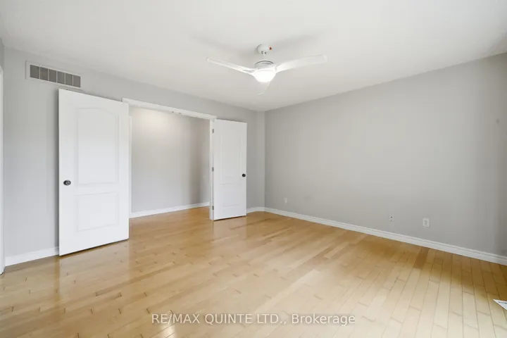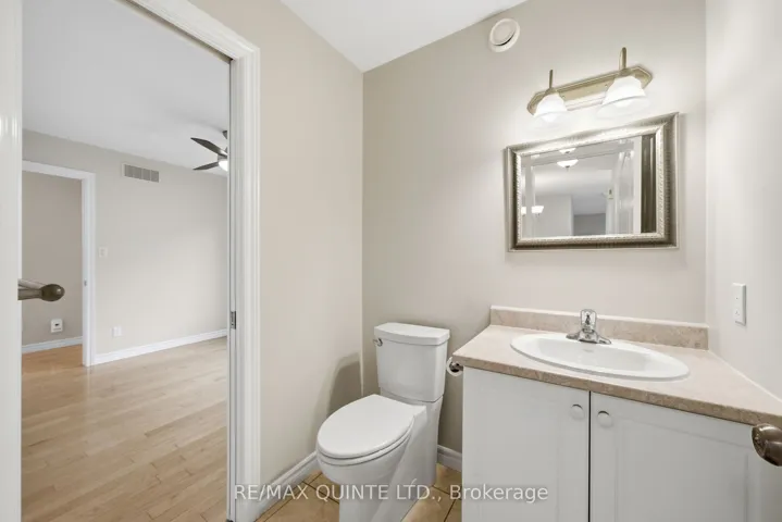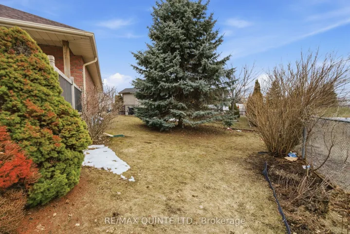 +"PublicRemarks": "Located in a quiet, highly desirable West End neighbourhood, this beautifully maintained Duvanco-built bungalow offers comfort, privacy, and move-in ready living. Backing onto parkland and green space with paved walking trails, the setting is peaceful and private, with a thoughtfully oriented lot that keeps the backyard tucked away from neighbouring views. Inside, the home is bright and inviting with hardwood flooring throughout the main living areas and tile in the kitchen and bathrooms. The functional layout provides a seamless flow between the kitchen, dining, and living spaces, filled with natural light. The kitchen features stainless steel appliances including a Bosch gas stove, tasteful cabinetry, a large pantry, and excellent storage. This 2-bedroom, 1.5-bathroom layout is both functional and unique, offering cheater access from each bedroom to separate bathrooms. The main floor primary suite includes a walk-in closet and direct access to a bathroom with a walk-in shower. The second bedroom also features a walk-in closet and convenient access to the powder room. A spacious main floor laundry closet adds everyday convenience, while the attached 1.5-car garage includes an automatic opener and exterior side access. The unfinished lower level offers incredible potential, with a rough-in for a full bathroom, space for two additional bedrooms, a rec room, and a cold room for extra storage. Outside, enjoy a partially covered back deck, landscaped front gardens with a sprinkler system, and a large, private yard perfect for relaxing or entertaining. Additional updates include a Lennox furnace (2019) and fresh interior paint (2026). A truly turnkey home offering space, privacy, and flexibility in a calm, well-established community. Located minutes from grocery stores, gas stations, restaurants, and more. Only 15 minutes to CFB Trenton, and 5 minutes to access the 401."
