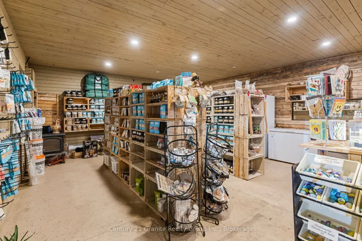 +"PublicRemarks": "Have you ever dreamed of relocating to Haliburton County to start your own business or own a stunning piece of land? This 18-acre property offers a rare opportunity to turn that dream into a reality. Perfectly situated along one of the busiest highways in Haliburton County, a major route through the heart of central Ontario, this property provides exceptional visibility and access to endless possibilities. Custom-built in 2022, the 1,200-square-foot main building exudes rustic charm with its beautiful wood finishes, capturing the essence of cottage-country living. The property also features a large walk-in refrigerator (completed in 2024), a commercial kitchen, and a convenient laundry room. In addition, three cozy Bunkie's provide guest accommodation or extra storage space. For those seeking to expand or diversify, the property is approved for the development of cabins, set around a tranquil 1-acre pond, perfect for year-round recreation whether it's relaxing by the beach in summer or skating in the winter. The picturesque setting makes this property an ideal destination retreat. Beyond the buildings, the land itself offers even more value with its own array of natural resources. Enjoy the fruits of a diverse farm-to-table setup with fruit trees, berry bushes, wild leeks, honey from the on-site hives, tapped maple trees, and a fully functional chicken coop. These offerings present unique opportunities for sustainable agriculture or an added attraction for a business focused on local products. Fully customizable to meet your unique business needs, this expansive property offers ample space for growth, whether you're looking to start a retail business, a resort, or any other entrepreneurial venture. The potential is limitless! Seize this rare opportunity to create something truly special in one of Ontario's most scenic and sought-after locations."