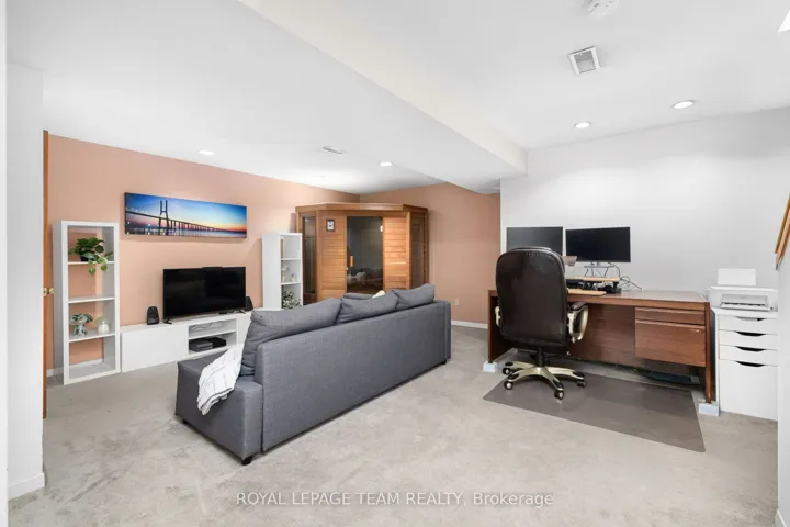 +"PublicRemarks": "Outstanding semi-detached home in Kanata Lakes with tremendous space, unique architectural design & high quality finishes. Approx. 2,645 sq.ft above grade, with 3 bedrooms & 3 baths. Front door with inset & transom windows bring natural light into the marble tiled foyer. Expansive living room with high ceilings, Brazilian cherry flooring, gas fireplace & recessed lighting. Wonderful windows have fantastic views of the deep backyard with southern explosure, patio, beautiful perennial gardens & forest plus no rear neighbors. Dining room overlooks the living room & has an updated chandelier & recessing lighting. Gourmet Kitchen has many refaced cabinets & drawers, updated hardware, quartz counters, tile backsplash, updated sink & faucet, 2 wall ovens & updated stovetop. Cozy eating area is great for light meals. Brazilian cherry flooring runs throughout the kitchen & adjoining family room. Gas fireplace, built in shelving & tall windows are attractive. Powder room with pedestal sink & updated mirror is off the main hall. Staircase leads you to the 2nd level hall that has skylight for natural light. Primary bedroom has tall ceilings, room for a king size bed & dressers. 2 double windows with shutters provide pretty views of the backyard. A large walk-in closet & spa-like ensuite bath are wonderful features. Ensuite bath has tile flooring, vanity with sink & mirror, free standing tub, double glass shower & modern wall tile & moulding. 2 more good-sized bedrooms each have overhead lights, double closets & big windows. Main bath was fully renovated & has a tub/shower combined with tile surround, quartz counter on the vanity & an updated mirror & light fixture. Handy laundry room & linen closet are close by. Lower level has room for an office space along with a double closet & entry to the double car garage. There is also a separate room that could be finished as a rec room. Parks, top schools, shops, are all close by & easy access to 417. 24 hours irrevocable on offers."
