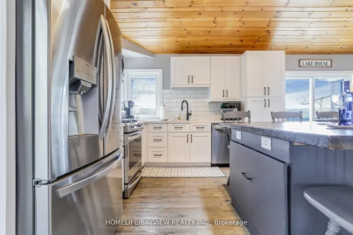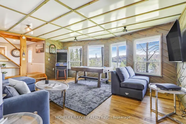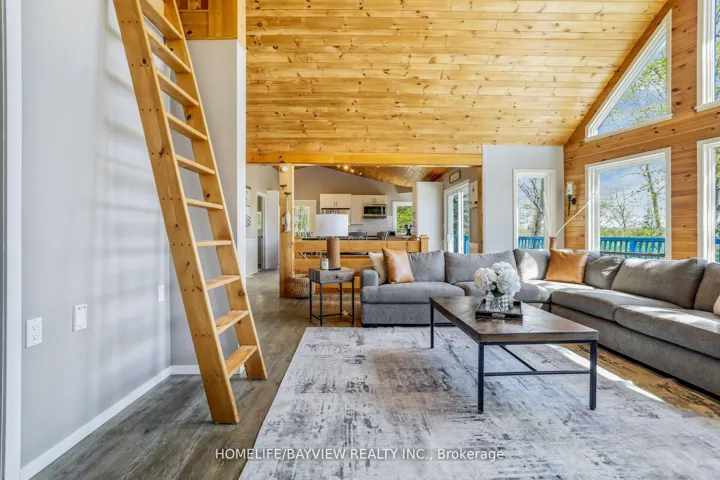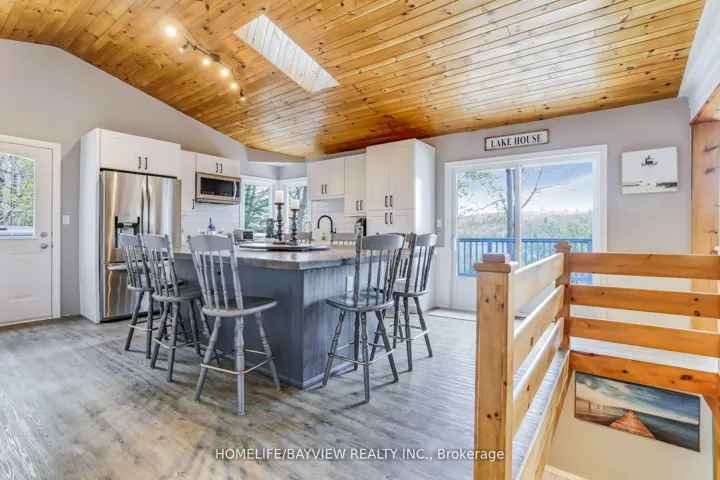 +"PublicRemarks": "Gorgeous 5 Bedroom + Loft Four Season A Frame Chalet Overlooking the Shores of Kushog Lake Nestled on 2.33 Acres in Picturesque Algonquin Highlands! Spanning approximately 3,000 sq. ft. across two levels, this inviting retreat offers private direct access to the lake, complete with a two-level deck and dock! The property showcases soaring vaulted ceilings, warm wooden accents, and rustic charm, highlighted by a new stone wall & Electric Fireplace that creates a cozy ambiance throughout. As you enter, you're welcomed by a spacious open-concept living area, boasting expansive floor-to-ceiling windows that frame magnificent views of the lake. The open-concept kitchen features a vaulted ceiling with skylights, an island perfect for gatherings, and a walkout to a wraparound deck offering stunning, unobstructed vistas of the lake and trees. This exquisite home includes five generously sized bedrooms, highlighted by a luxurious master suite with a private ensuite that features a skylight and access to a balcony to enjoy your morning coffee. Additionally, there are two more full washrooms, each beautifully appointed with modern fixtures and elegant finishes. For convenience, the property includes a spacious detached two-car garage with electricity. A separate double-car covered carport and 3rd bay provide great storage for boats/trailers. A quick stroll across the road grants you immediate access to the shores of Kushog Lake, complete with dock access. This is a fantastic opportunity for a family retreat that's both quiet and relaxing, located just minutes from Minden and Dorset, and within easy reach of ski hills, ATV, and snowmobile trails, restaurants, and shops."