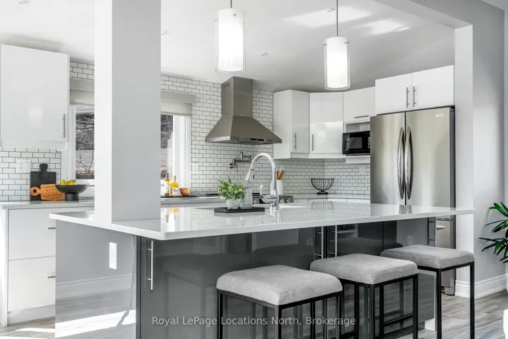+"PublicRemarks": "This beautifully upgraded home offers a perfect blend of modern luxury and comfort while maintaining the charm of a 70s chalet. Every detail, from the windows to the showerheads, has been thoughtfully designed. The main living area in this side-split layout is just a few steps up from the foyer and opens into a bright, spacious great room filled with natural light. Enjoy stunning sunset views, cozy up by the gas fireplace, or admire the smart layout of a spacious kitchen island, complete with a pot filler over the stove and built-in storage. Stylish blinds throughout allow you to control how much sunlight enters, creating a warm and inviting atmosphere. The foyer itself is practical, with a mudroom, a laundry closet, and a convenient three-piece bathroom with easy access to the outdoors. A few steps down from the foyer lead to the charming sleeping quarters - three cozy bedrooms and a well-designed shared four-piece bathroom with a heated floor for added comfort. Located in the peaceful Swiss Meadows community at the top of Blue Mountain, this area offers oversized lots and a calm, scenic setting typical of this quiet, mature neighborhood. It's a perfect base for skiing and ski lifts are within walking distance. You can also hike the nearby Bruce Trail, explore the Scenic Caves, or take a short drive to Collingwood or Blue Mountain Village. After a day of adventure, relax on your deck or gather around the fire pit to enjoy community events that create a friendly, welcoming atmosphere."