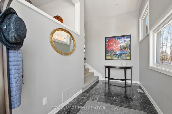 +"PublicRemarks": "Outstanding semi-detached home in Kanata Lakes with tremendous space, unique architectural design & high quality finishes. Approx. 2,645 sq.ft above grade, with 3 bedrooms & 3 baths. Front door with inset & transom windows bring natural light into the marble tiled foyer. Expansive living room with high ceilings, Brazilian cherry flooring, gas fireplace & recessed lighting. Wonderful windows have fantastic views of the deep backyard with southern explosure, patio, beautiful perennial gardens & forest plus no rear neighbors. Dining room overlooks the living room & has an updated chandelier & recessing lighting. Gourmet Kitchen has many refaced cabinets & drawers, updated hardware, quartz counters, tile backsplash, updated sink & faucet, 2 wall ovens & updated stovetop. Cozy eating area is great for light meals. Brazilian cherry flooring runs throughout the kitchen & adjoining family room. Gas fireplace, built in shelving & tall windows are attractive. Powder room with pedestal sink & updated mirror is off the main hall. Staircase leads you to the 2nd level hall that has skylight for natural light. Primary bedroom has tall ceilings, room for a king size bed & dressers. 2 double windows with shutters provide pretty views of the backyard. A large walk-in closet & spa-like ensuite bath are wonderful features. Ensuite bath has tile flooring, vanity with sink & mirror, free standing tub, double glass shower & modern wall tile & moulding. 2 more good-sized bedrooms each have overhead lights, double closets & big windows. Main bath was fully renovated & has a tub/shower combined with tile surround, quartz counter on the vanity & an updated mirror & light fixture. Handy laundry room & linen closet are close by. Lower level has room for an office space along with a double closet & entry to the double car garage. There is also a separate room that could be finished as a rec room. Parks, top schools, shops, are all close by & easy access to 417. 24 hours irrevocable on offers."