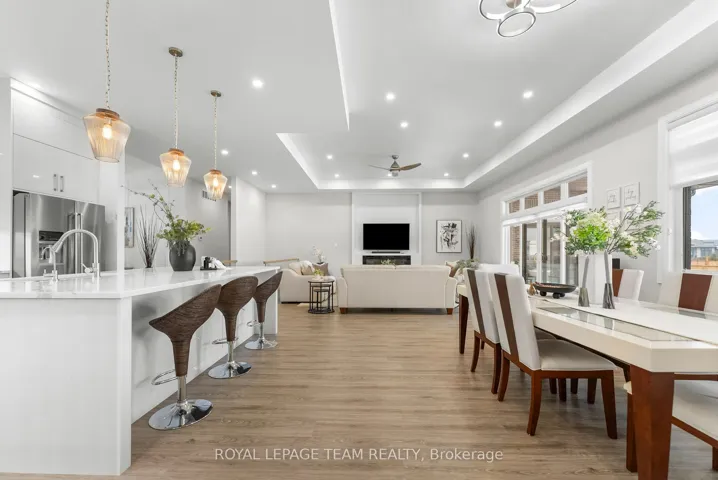 +"PublicRemarks": "Welcome to this stunning custom bungalow in the sought-after community of Greely, where luxury living meets modern design. Boasting one of the largest bungalow floor plans in the neighbourhood, this sprawling executive residence offers over 4,700 sq ft of living space, a true 3-car attached garage, and sits on a beautifully landscaped and fully fenced half-acre lot. From the moment you arrive, the quality and craftsmanship are undeniable. A grand foyer welcomes you with soaring 11-foot ceilings, designer light fixtures, pot lights, stylish accent walls, and oversized 8-foot interior doors throughout, flowing seamlessly into the breathtaking open-concept kitchen, living, and dining area.The designer kitchen is the centrepiece of this home and an entertainer's dream - anchored by an expansive island, quartz countertops, chic tile backsplash, top-tier stainless steel appliances, a massive walk-in pantry, and abundant cabinetry.The main level offers three generous bedrooms and two spa-inspired 5-piece bathrooms. The primary suite is a true hotel-inspired sanctuary featuring a walk-in closet with custom shelving, a luxurious ensuite with oversized soaker tub, and direct access to the covered rear patio.The fully finished lower level features two additional bedrooms, a flexible den that could serve as a 6th bedroom, a beautifully finished 5-piece bathroom, full second kitchen, dedicated laundry, and spacious rec area. With its own private entrance, this level is a turnkey solution for multi-generational living or a high-income in-law suite.The attached 3-car garage features a fourth door accessible from the backyard - ideal for recreational vehicles or a workshop. The covered rear porch overlooks a peaceful, fully fenced backyard, perfect for summer entertaining. Properties of this calibre and craftsmanship are genuinely rare. This home truly delivers on every level."