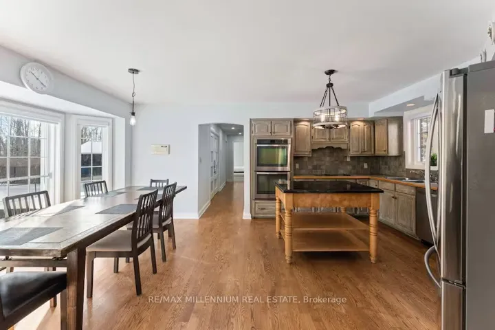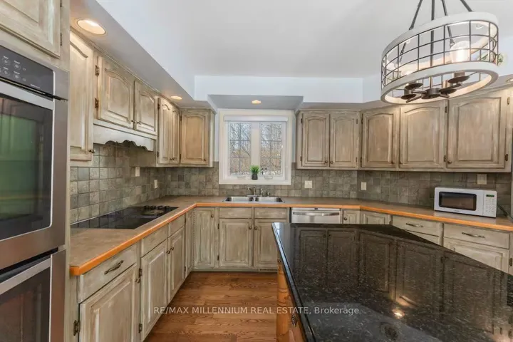 +"PublicRemarks": "This exceptional 77-acre waterfront estate on Sharbot Lake offers the perfect blend of privacy,natural beauty, and convenience, ideally located near the village, scenic trails, localamenities, and within commuting distance to Kingston and Ottawa. Surrounded by mature trees,professionally landscaped grounds, and a tranquil pond, the property welcomes you with a grandcircular driveway leading to a stunning residence offering over 6,000 sq ft of living space.Inside, the elegant living and dining areas are designed for entertaining, featuring largewindows that capture picturesque views of the front gardens. The family room provides a warmand inviting atmosphere with custom built-ins and a cozy fireplace. The country-style kitchenis thoughtfully designed with built-in stainless steel appliances, a double wall oven, acentral island, breakfast area, and a spacious walk-in pantry. The bedrooms are generouslysized and filled with natural light, with the primary suite serving as a luxurious retreatcomplete with floor-to-ceiling windows and a spa-inspired 5-piece ensuite. Each bedroom offersits own private walkout to the beautifully landscaped grounds. The fully finished lower levelis ideal for entertaining and everyday living, featuring a large recreation/games room, gym,office, additional bedroom, 3-piece bathroom, ample storage, and a walk-out. The outdoor spaceis truly a backyard oasis, complete with a fenced yard, inground pool, pool house with a2-piece bathroom, and an expansive deck and patio area overlooking the gardens and surroundingwoodland. A rare opportunity to own a remarkable country estate offering space, privacy, andtimeless appeal."