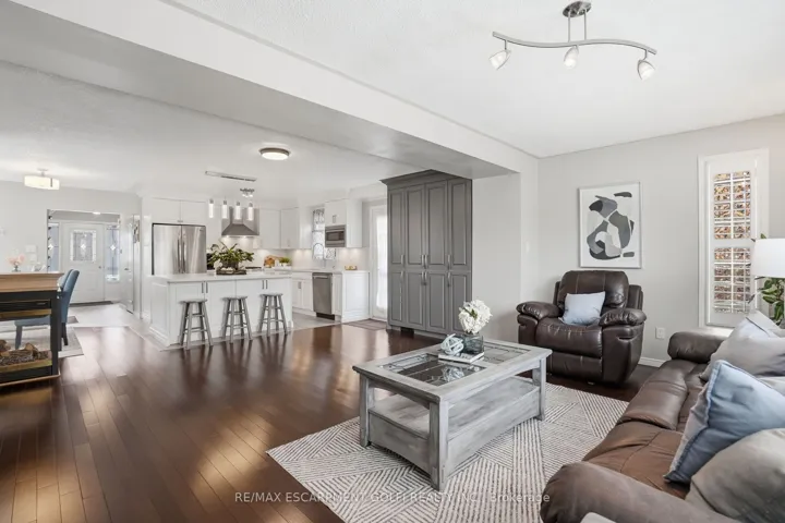 +"PublicRemarks": "Welcome to this beautifully maintained detached home featuring a classic brick exterior, double-car garage, and inviting covered front porch with aggregate concrete detailing that creates excellent curb appeal. Step inside to a bright and welcoming foyer highlighted by an elegant staircase and beautiful hardwood floors that extend throughout the main level. A thoughtfully designed layout makes this home ideal for both everyday living and entertaining, complemented by custom California shutters throughout. The open-concept living and dining area is filled with natural light and offers the perfect setting for family gatherings and special occasions. The updated kitchen serves as the heart of the home, showcasing quartz countertops, high-end appliances, soft-close cabinetry, and a large centre island with seating and convenient pull-out drawers on both sides, providing exceptional prep space and functionality. The kitchen flows seamlessly into the cozy family room and large windows overlooking the backyard, creating a warm and inviting space to relax or entertain. Upstairs, you'll find spacious bedrooms with beautiful architectural details, including vaulted ceilings and large arched windows that bring in abundant natural light. The primary bedroom features a large walk-in closet and private ensuite, while the additional bedrooms offer flexibility for family living, guests, or a home office. The finished basement adds valuable additional living space, complete with new flooring and a crawl space that provides extra storage. Enjoy the private backyard featuring a deck ideal for outdoor dining and entertaining, along with a low-maintenance yard designed for easy upkeep. Located in a desirable family-friendly Waterdown neighbourhood, this home is close to parks, trails, schools, shopping, and everyday amenities, with convenient access to Highway 403, 407, Aldershot GO Station, Burlington, Hamilton, and the GTA."