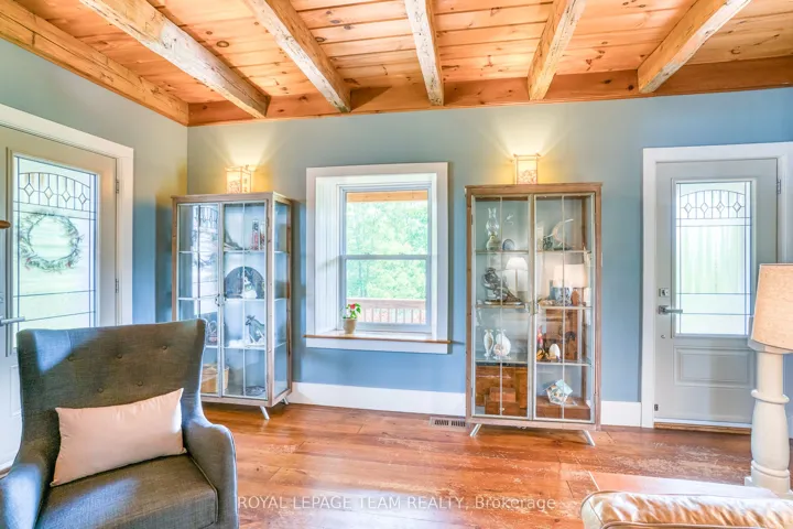 +"PublicRemarks": "ONE OF A KIND WITH INSTANT CURB APPEAL SET ON 94 ACRES!! Originally an 1800s farmhouse which was dismantled & meticulously rebuilt + an addition in the 1990s. You will be impressed with the charm and character plus the quality upgrades. The handy mudroom/foyer with tile floor is the ideal place to greet family & friends. Recently updated kitchen is complete with quartz counters and tile floors + a sunny window overlooking your backyard. Both the dining room & living room have wide plank floors & beamed ceilings. From the living room you have direct access to your wrap around veranda. The perfect place to have your morning coffee & listen to the birds!! The family room showcases an exposed log wall, wide plank floors & a cozy wood stove. From the family room you have direct access to your sun room offering a peaceful relaxing view overlooking your back fields. A handy two-piece bathroom is conveniently located on the main floor. Upstairs you will find three spacious bedrooms with pine floors The primary bedroom offers a walk-in closet. With Fiber Internet & the office area it is an ideal place for those that work from home. Modern 5-piece bathroom with double sinks, a soaker tub & a separate shower stall. Excellent out bldgs including two separate detached garages both offering extra storage space & room for your special projects & hobbies. Oh and don't forget the fresh eggs from your own chicken coop!! The acreage offers the perfect combination of open fields, forest and even a pond next to the house! You will have year-round enjoyment with hiking & 4-wheeling in the summer, cross-country skiing, snowshoeing & snowmobiling in the winter. Recent upgrades roof, furnace and wood stove 2016, windows 2018, two doors 2019, kitchen and both bathrooms 2021, veranda 2023. Utilities hydro approx $190/mo, propane approx $190/mo, wood 3 chords/yr. Located on a peaceful country road with easy access. 15 min to Almonte, 1 hr to downtown Ottawa, min to Clayton General Store."