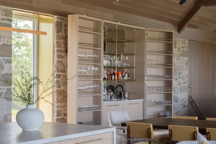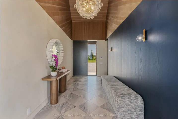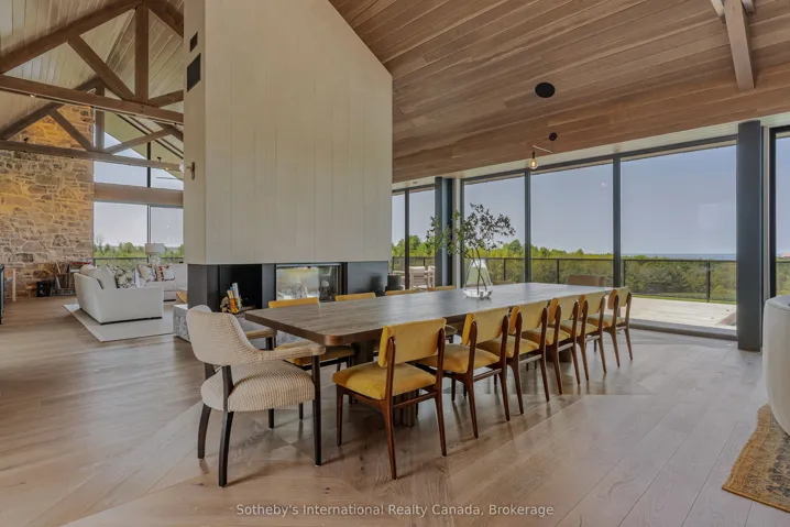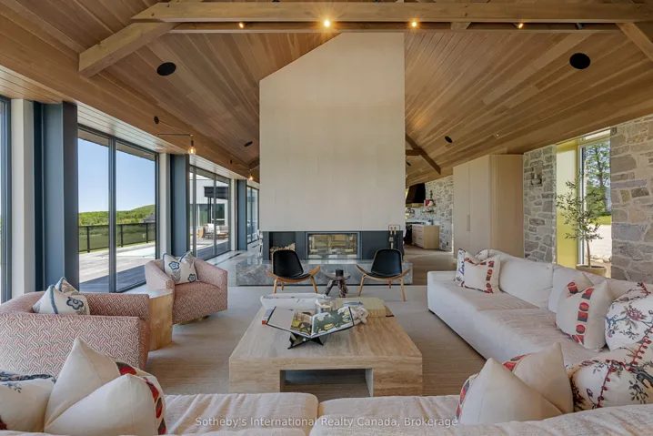 +"PublicRemarks": "Never has there been an offering quite like this in the Blue Mountains. Welcome to Georgian Valley Farm, where world-class design meets the unspoiled beauty of nature and breathtaking sunsets. Set on 37 spectacular acres, this one-of-a-kind estate is anchored by an extraordinary 11,000 sq ft custom residence - a design landmark by Post Architecture Inc. and built by renowned builder David Eaton, Baylyn Construction. This property defines luxury recreational living, w/saltwater pool, Har Tru clay tennis court, orchard, pond, a Hartley Botanic Greenhouse - 'Grand Manor' imported from the UK and an incredible restored barn, ideal for entertaining. Perched high on 7th Line, the home presents commanding, panoramic views of the Niagara Escarpment and Georgian Bay from nearly every room. Scandinavian-inspired minimalism blends with refined country elegance, w/ Moncer European oak floors, soaring wood-clad ceilings, and a wall of floor to ceiling windows by Atek that frame the landscape. Chef's kitchen features a 12-ft marble island, appliances by Miele, Sub-Zero, and Lacanche, custom Barlow millwork, exquisite stonework and full butler's pantry. The dining room for 14 includes a concealed Barlow bar and a striking 2-way woodburning STUV fireplace shared with the living room. Thoughtful details are found throughout w/ designer lighting, imported tiles and hand-painted De Gournay wallpaper in the adult lounge, library, and powder room. A main floor primary sits behind double Egyptian doors and features a gas fireplace, luxurious ensuite, WIC, and sitting area. 4 upper bedrooms, all uniquely designed, feature beautifully curated ensuites with extensive tile/marble finishes, custom millwork and WIC. The lower level offers a golf simulator, gym, sauna, rec room, refreshment area, 200+ bottle Rosehill Wine Cellar, and w/o to the covered terrace and pool. Exceptional outdoor living offers a 2,520 sq ft deck, with a full Crown Verity kitchen, dining & lounge areas, and a hot tub."