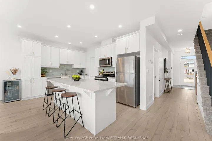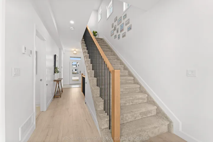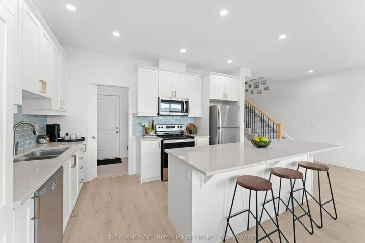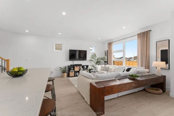 +"PublicRemarks": "Welcome to Amherstview. This beautifully maintained, 2 year old semi-detached home offers 1,800sq. ft. of thoughtfully designed living space, perfect for modern family living. Step inside to a bright ceramic tiled foyer and soaring 9ft high ceilings that lead into an open-concept main floor, ideal for both everyday living and entertaining. The stylish kitchen features quartz countertops and flows seamlessly into the living and dining areas, creating a warm and inviting space to gather. A convenient powder room and mudroom with direct access to the garage complete the main level. Step outside to enjoy the family sized deck and fully fenced yard, perfect for relaxing or hosting summer get togethers. Upstairs, you'll find a well placed laundry room, a full 4 piece bath, and three generously sized bedrooms. The spacious primary suite offers a walk-in closet and private ensuite, creating a welcoming retreat at the end of the day. Located close to schools, parks, and shopping, this home offers the perfect balance of comfort, convenience, and lifestyle appeal."