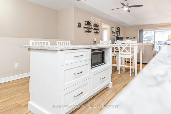 +"PublicRemarks": "Welcome to the serenity of this exclusive bungalow townhouse in an adult community complex accessed through a private road off of Cross St E in the quaint town of Dunnville. Here you will find Unit 6 which is carpet free and has been immaculately maintained & upgraded featuring a beautiful white kitchen with subway tile backsplash, island with electrical outlet, stainless appliances, Boshart drinking water filtration system, open to the spacious dining/living area featuring a gas fireplace and large sliding doors to the backyard deck with motorized awning. The spacious primary bedroom with upgraded lighting has a well-planned 4pc ensuite bathroom and walk in closet. The 2nd main floor bedroom is situated close to the front foyer and works well as a home office, down the hall is inside garage access, a convenient main floor laundry with new built-in storage cabinetry and a 2pc guest bathroom. In the lower level you will find a recently finished (2024), open concept, extra large flexible recreation space with upgraded electrical, as well as an unfinished storage/utility area with a laundry tub. Enjoy the convenience of 1 floor living, snow removal and lawn maintenance done for you and a location within walking distance to all downtown amenities as well as the Grand River pathways. Included with the purchase of this townhouse is a complimentary 1 year Canadian Home Shield Warranty (some exclusions & limitations apply)"