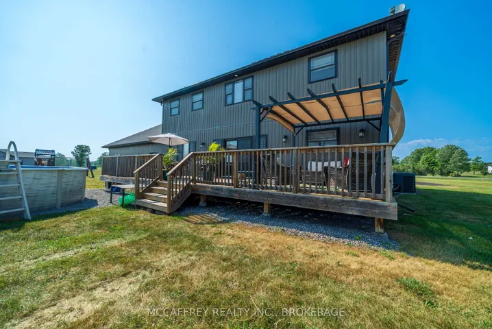 +"PublicRemarks": "Welcome to your dream home, a breathtaking custom-built two-story residence that effortlessly combines luxury and comfort. As you approach the property, you'll be greeted by a circular driveway, and an attached two-car garage that adds convenience and ample space for parking. The grand entrance is truly a sight to behold, featuring large, elegant wood beams that exude a timeless charm and glandular appeal. Step inside and immerse yourself in a sun-drenched space where an open-concept design seamlessly unites style and functionality. The expansive kitchen is a chef's delight, complete with a large center island, generous pantry, and a dining area that invites lively gatherings and memorable moments. The spacious living room, bathed in natural light, offers the tranquility of a serene retreat. Open the patio doors to a welcoming deck, perfect for an afternoon unwind, and enjoy your private above-ground pool with picturesque views of the peaceful pond beyond. Completing the main level is a chic 2-piece bathroom, a versatile den or office space for those who work from home, and a convenient mudroom with direct access to the garage. Ascend the stunning wood staircase to the second floor, where every detail has been crafted with care. Discover three beautifully appointed bedrooms and a well-equipped laundry room with a sink for added ease. The primary bedroom is a true oasis, featuring a walk-in closet and a luxurious 4-piece ensuite that promises relaxation with its indulgent soaker tub and sleek glass shower. The lower level offers even more, leading you to a vibrant finished recreation room, a perfect canvas for family entertainment or personal retreat. This level also includes a fifth bedroom, a 4-piece bathroom, and a generous utility room with abundant storage. This spectacular home is your sanctuary, where every corner is designed to inspire and comfort. Embrace the elegance, the space, and the breathtaking views this is a property not to be missed!"