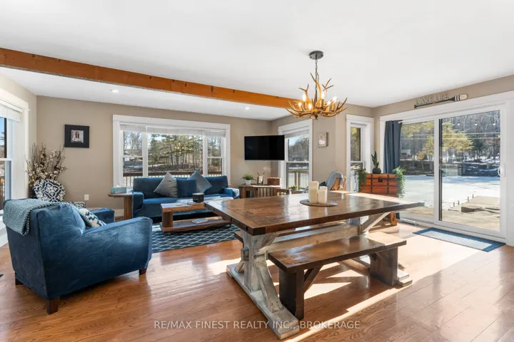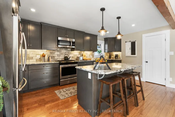 +"PublicRemarks": "Welcome to your private waterfront retreat on Sydenham Lake, offering an incredible 312 feet of shoreline tucked into its own quiet bay just off the main lake. This protected shoreline provides the calm waters ideal for swimming, fishing, docking, and year-round lake enjoyment. Outdoor living is at its finest with a wraparound deck showcasing lake views and a stunning limestone patio designed for entertaining at the water's edge. Unwind in the hot tub beneath a custom-built gazebo after a day on the lake. This property also includes a double-car garage, a fully paved driveway, and a newly built storage building-providing ample storage for vehicles, tools, and recreational equipment. The home has been extensively renovated and thoughtfully updated. The custom-designed kitchen features granite countertops, a large island, and solid oak flooring-perfect for gathering and entertaining. Two beautifully updated bathrooms including a spa-inspired ensuite with a glass shower and deep, stand-alone soaking tub-an ideal retreat after a day outdoors. Additional upgrades include a new steel roof, siding and stone exterior, and new windows and flooring. A complete list of improvements is available upon request. This is a rare opportunity to own a truly exceptional waterfront property on Sydenham Lake-where privacy, modern comfort, and four-season recreation combine to create an unforgettable lakeside lifestyle."