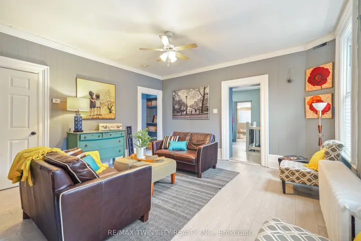 +"PublicRemarks": "Perfect Opportunity for First-Time Buyers & Savvy Investors! Welcome to this charming all-brick 2-storey home ideally located just a short walk to downtown Brantford and Wilfrid Laurier University-making it an excellent option for homeowners, students, or rental income potential. This spacious 3+1 bedroom, 2 bathroom home offers a flexible layout to suit a variety of lifestyles. The main floor features a bright and inviting living room with high ceilings and crown moulding, creating a warm and welcoming space to relax or entertain. A main floor bedroom with a decorative fireplace adds character and versatility-perfect for guests, a home office, or rental use. The eat-in kitchen provides ample space for everyday living, while the adjoining den offers additional room for entertaining or study space. Upstairs, you'll find generously sized bedrooms filled with natural light, ideal for families or shared accommodations. Recent updates including fresh paint and easy-care laminate flooring throughout make this home move-in ready while still offering room to add your own personal touch. Step outside to enjoy a private backyard with a covered porch-perfect for morning coffee or quiet evenings. The property also includes convenient driveway parking. Situated on a transit route and just steps to parks, schools, churches, shopping, and the downtown core, this location is unbeatable for accessibility and lifestyle. Whether you're looking to get into the market or expand your investment portfolio, this property offers incredible value, space, and potential in a prime location. Don't miss this opportunity! Book a viewing for this lovely home!"