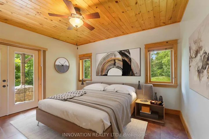 +"PublicRemarks": "Discover your Urban Oasis! This custom-designed, ecologically sustainable post-and-beam home sits on a serene peninsula in Pembroke, with 2.8 acres of lush forest. Enjoy privacy and natural beauty while having all amenities at your doorstep. The open-concept main level boasts 23-ft ceilings and features a newly renovated kitchen with custom pine cupboards, quartz countertops, and modern appliances. Relax in the curved sitting area with a gas fireplace or by the wood stove in the living room. The main level includes an office, two full bathrooms, and three bedrooms, including the primary suite with a walk-in closet and sliding doors leading to a patio with river views. The upper level offers bonus rooms, a large storage area, and a fourth bedroom overlooking the garden. Updates include paved driveway with a gate 2023, new washer & dryer 2022, infrared sauna 2023, new owned hot water heater 2025. Additional features include two outdoor sheds, a hot tub, and solar panels providing passive income. Book your showing today!"