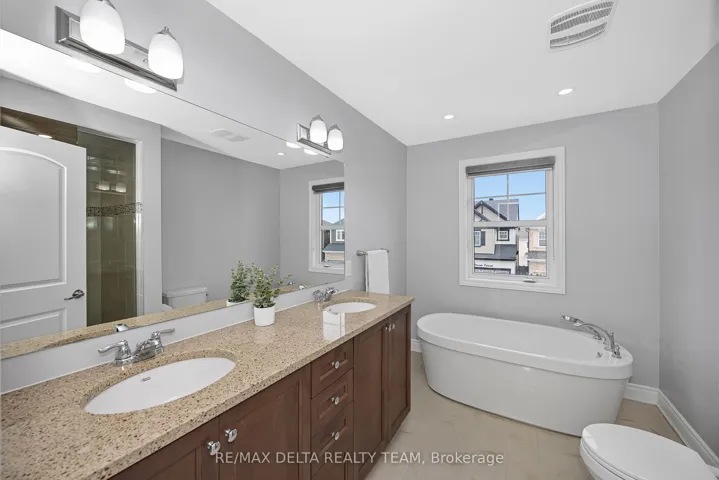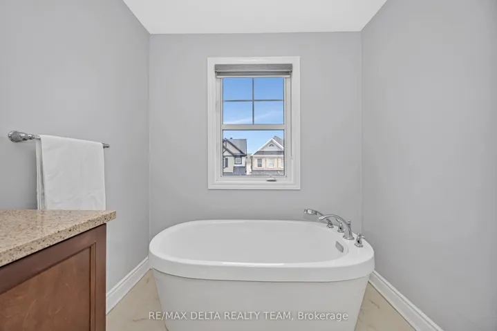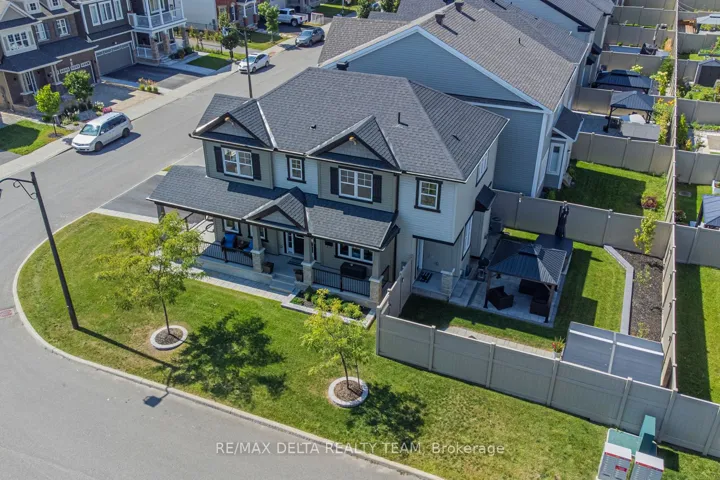 +"PublicRemarks": "Welcome to this beautifully upgraded open-concept home, perfectly situated just steps from Lamprey Park in sought-after Half Moon Bay. The extended interlock driveway and elegant wraparound front porch create exceptional curb appeal from the moment you arrive. Inside, a spacious tiled foyer leads to a stunning chef's kitchen featuring a large island with breakfast bar, quartz countertops, stainless-steel appliances, and custom window blinds throughout. The kitchen flows seamlessly into the generous dining area and bright living room, complete with a cultured-stone gas fireplace-an ideal space for both entertaining and everyday living. Upstairs offers four spacious bedrooms, including a luxurious primary suite with a walk-in closet and spa-inspired 5-piece ensuite. A convenient second-floor laundry room adds everyday practicality. Hardwood flooring extends across the main level, staircase, and upper hallway, while all bathrooms feature stylish quartz finishes. The fully finished lower level provides exceptional additional living space with a fifth bedroom, and a full 3-piece bathroom-perfect for guests, extended family, or a private retreat. Set on a large, fully fenced corner lot, the backyard is designed for outdoor enjoyment with professional interlock landscaping, a gazebo, BBQ gas line, hot tub, and storage shed. The garage is fully outfitted with wall organizers, a workshop heater, and a central vacuum outlet, offering both convenience and functionality."