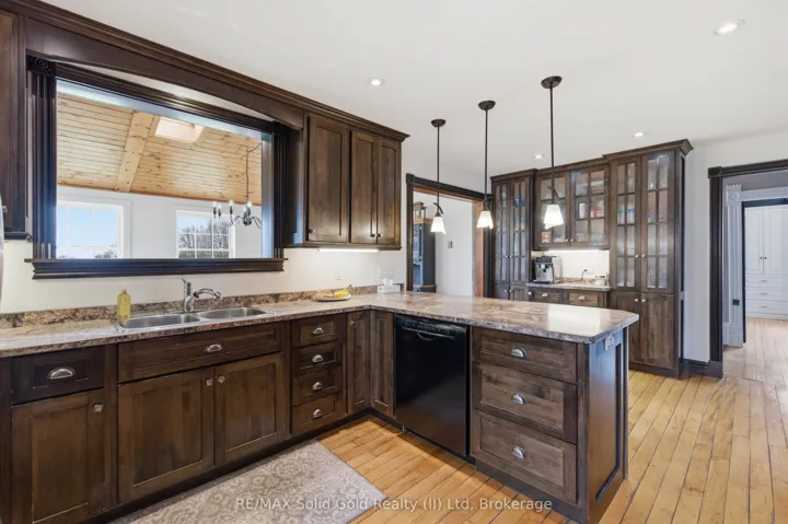 +"PublicRemarks": "TRANQUIL COUNTRY ESTATE! Located close to St Mary's on a paved road, this stunning 1.2 acre home offers an unparalleled view of singing pines, towering trees, rolling lawns, farmer's fields and a sparkling inground pool. Step into the beautifully updated foyer that has plenty of storage and provides access to a bright laundry room and newer 4 piece bath. The welcoming family room has custom built-in shelving, a lovely stone fireplace, and a walk-out to a gorgeous pergola and scenic views. Cooking will be a joy in the large kitchen and the sunny dining room can host intimate meals for friends and family. The gracious living room features antique pocket doors, convenient built-in shelves and spacious enough to accommodate large family gatherings. Beside it is the den that would also work well as a main floor bedroom. Upstairs you will find 4 spacious bedrooms and a charming bath. Gardeners and hobbyists will love the detached garage, detached shop with hydro (gas lines installed to shed but not hooked up), 3 decks and firepit. A FRAMEABLE VIEW!"