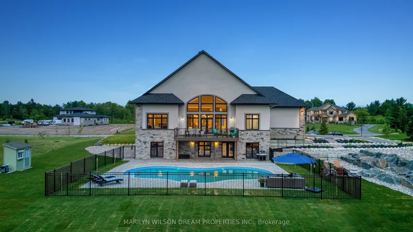 +"PublicRemarks": "Elevate your lifestyle in this 2021-built executive bungalow at 324 Hedley Way, set on a rare, expansive 182 x 527 ft private lot in prestigious Kanata North, backing onto forest for ultimate seclusion close to everything. A grand driveway approaches the bright 3-car garage, perfect for car enthusiasts or family needs. Step Inside to soaring 12-ft ceilings throughout and a breathtaking 19-ft cathedral great room flood the home with light and volume, one-level luxury redefined. The chef's kitchen is exceptional: hand-glazed cabinetry, expansive granite island, induction cooktop with pot filler, dual ovens, Frigidaire commercial-grade fridge and freezer, dedicated wine bar, walk-in pantry, and integrated workspace. Retreat to the primary suite oasis featuring a double-sided fireplace and spa-like ensuite with oversized 6.5 x 6 ft glass shower, deep soaker tub, dual vanities, private water closet, and massive walk-in closet. The primary suite alone lives like a luxury condo, bedroom, spa bath, and boutique walk-in totalling over 700 square feet. A custom staircase descends to the bright walkout lower level (9'6" ceilings, in-floor radiant heat) boasting a dedicated theatre room, wet bar, games area, and two additional bedrooms sharing a Jack & Jill bath, ideal as a second living space. Outside, resort-style bliss awaits: multi-tiered landscaping, mature forest privacy, and a heated saltwater pool. Your private escape, just minutes from Kanata's tech hub and amenities. True refined resort living in one of Ottawa's most sought-after enclaves. Don't miss this exceptional opportunity."