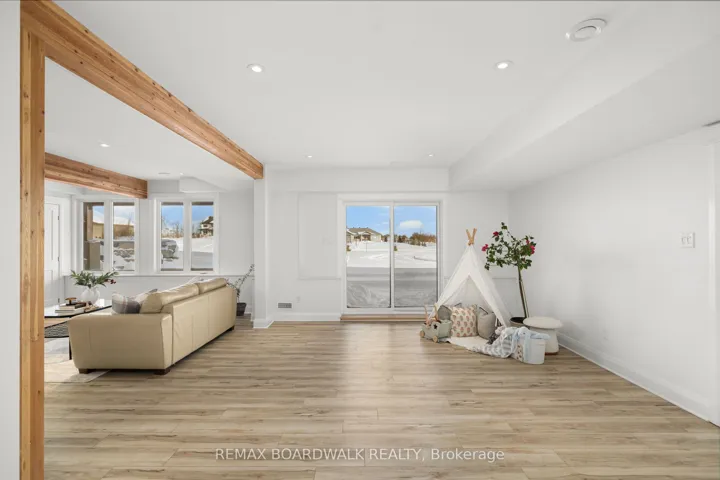 +"PublicRemarks": "Sitting on just under two acres of beautifully landscaped grounds, this extraordinary custom-built reverse walkout bungalow offers a rare blend of architectural elegance, refined craftsmanship, and serene natural beauty. Built by Linwood, this residence is a masterclass in luxury living, where every element has been thoughtfully curated for both style and function. The stunning entrance way greets you with dramatic 16-foot vaulted pine ceilings, exposed Douglas fir beams, and rich hickory hardwood flooring-creating a striking yet inviting ambiance. The expansive, light-filled great room seamlessly connects to a designer chef's kitchen, appointed with premium appliances, quartz surfaces, and an oversized island that serves as both a culinary workspace and a sophisticated gathering point. Designed for elevated everyday living and effortless entertaining, the home offers a seamless indoor-outdoor connection through expansive windows and three patio doors which all lead to a deck that spans the rear of the home. The fully finished walkout lower level continues the home's refined aesthetic, featuring 9-foot ceilings, two generously sized bedrooms, and a spa-calibre bathroom designed for ultimate relaxation. A versatile living area provides endless possibilities-whether as a private fitness studio, media lounge, or games retreat. Outdoors, the property transforms into a tranquil estate setting, complete with curated landscaping, newly planted trees, and elegant Brownstone rock walls. Ideally located just minutes from Stittsville and Carleton Place, with quick access to major routes, this exceptional property delivers the perfect balance of exclusivity and convenience. A distinguished offering for the buyer who appreciates luxury, craftsmanship, and setting come together in perfect harmony."