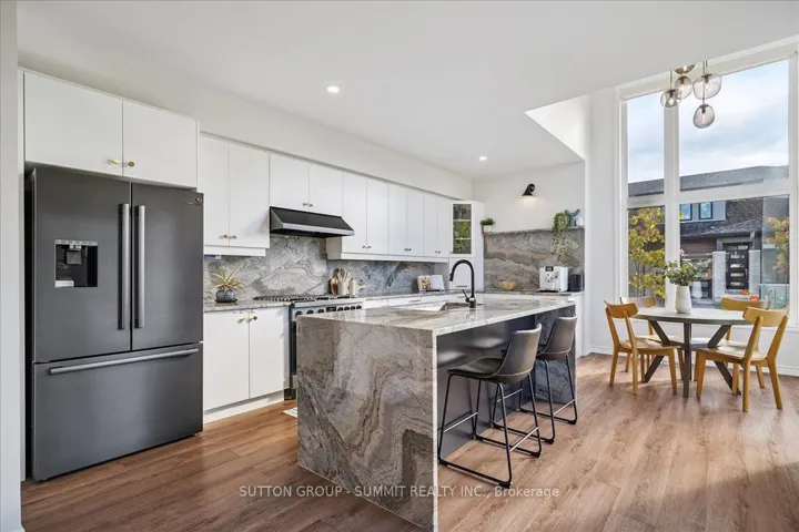 +"PublicRemarks": "It's rare for a Three Bedroom, Two Car Garage, End-Unit Bungaloft with over $100k in upgrades to come on the market at this price, in this neighbourhood. Over 2450 Sq Ft of Beautifully Upgraded Living Space with stress-free, low maintenance living. Small monthly fee provides lawn maintenance (front and back!) and snow removal, even on the driveway - no need to own a snow shovel or a lawnmower. Entertaining and cooking is a breeze in the Naturally Bright Kitchen with a Waterfall Quartzite Oversized Island. Quartzite Backsplash and Counters create a beautiful backdrop throughout the Kitchen with no shortage of storage. Soaring corner windows allow for copious amounts of natural light throughout the day. Relax in the Family Room/Living Room with huge windows, soaring ceiling, gas fireplace and Walkout to Fully-Fenced and Private Backyard with Deck (2025). Main-Floor Primary Bedroom with 4-Pc Ensuite overlooks the backyard. Spa-like Primary Ensuite is a dream with upgraded Frameless Glass Enclosure, Designer-Tiled Shower, Rain Shower Head and Double Vanity (2023). Upgraded Main-Floor Laundry Room with sink and plenty of storage (2025) has direct access to the Two Car Garage. Motorized window treatments throughout the main floor. Upper Loft overlooking the Family Room can double as another hangout space and/or office - the choice is yours. Two Ample-Sized Bedrooms are situated on the upper level with a 4-pc Bathroom. Clean, Dry and Warm Basement with Triple Coated Polyurethane Floor (no dust!) and a Basement Bathroom Rough-In is a blank canvas for finishing ideas and ideal for worry-free storage. Cantina aficionados will enjoy the 4' x 15' finished and insulated cold room. This is luxurious, stress free living at its finest."