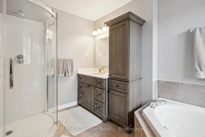 +"PublicRemarks": "Welcome to 24 Jacob Gingrich Drive!! A Luxury Masterpiece in Deer Ridge Estates. Experience refined living in this executive, custom built detached home nestled in the prestigious neighborhood. Offering over 5,600 sq. ft. of impeccably finished living space, this residence seamlessly blends modern elegance with exceptional craftsmanship. Step inside to discover an award winning gourmet kitchen, thoughtfully designed with premium appliances, sleek granite countertops, a built in breakfast nook, and soaring 10-foot coffered ceilings. Entertain effortlessly in the separate formal living and dining rooms, or unwind in the breath taking family room highlighted by dramatic 22'ft high ceilings. Luxury is evident in every detail from in floor heating and custom glass insert doors to the stunning glass railed wooden staircase leading to a versatile loft space. The primary suite is a true private retreat, featuring a covered porch, direct backyard access through sliding doors, and a spa inspired ensuite complete with a glass steam sauna, rainfall shower with body jets, and a custom walk in closet. The fully finished basement is designed for ultimate entertaining, boasting 9'ft ceilings, large lookout windows, and a built in home theatre with surround sound. Enjoy a wet bar, wine cellar, home gym, and game room. A second master suite with ensuite offers excellent in-law suite potential. Step outside into your professionally landscaped backyard oasis, featuring a covered patio, built in Napoleon BBQ, luxury spa hot tub, and a full sprinkler system for effortless maintenance. Interlocked driveway with parking for up to 6 vehicles(no sidewalk)Oversized garage with a Tesla charger. Prime location just minutes to Highway 401, shopping, top rated schools, and three premier golf clubs. This is a rare opportunity to own a truly exceptional home in one of the area's most sought after communities. Your dream home awaits!!"