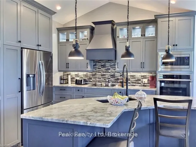 +"PublicRemarks": "Welcome to 24 Jacob Gingrich Drive!! A Luxury Masterpiece in Deer Ridge Estates. Experience refined living in this executive, custom built detached home nestled in the prestigious neighborhood. Offering over 5,600 sq. ft. of impeccably finished living space, this residence seamlessly blends modern elegance with exceptional craftsmanship. Step inside to discover an award winning gourmet kitchen, thoughtfully designed with premium appliances, sleek granite countertops, a built in breakfast nook, and soaring 10-foot coffered ceilings. Entertain effortlessly in the separate formal living and dining rooms, or unwind in the breath taking family room highlighted by dramatic 22'ft high ceilings. Luxury is evident in every detail from in floor heating and custom glass insert doors to the stunning glass railed wooden staircase leading to a versatile loft space. The primary suite is a true private retreat, featuring a covered porch, direct backyard access through sliding doors, and a spa inspired ensuite complete with a glass steam sauna, rainfall shower with body jets, and a custom walk in closet. The fully finished basement is designed for ultimate entertaining, boasting 9'ft ceilings, large lookout windows, and a built in home theatre with surround sound. Enjoy a wet bar, wine cellar, home gym, and game room. A second master suite with ensuite offers excellent in-law suite potential. Step outside into your professionally landscaped backyard oasis, featuring a covered patio, built in Napoleon BBQ, luxury spa hot tub, and a full sprinkler system for effortless maintenance. Interlocked driveway with parking for up to 6 vehicles(no sidewalk)Oversized garage with a Tesla charger. Prime location just minutes to Highway 401, shopping, top rated schools, and three premier golf clubs. This is a rare opportunity to own a truly exceptional home in one of the area's most sought after communities. Your dream home awaits!!"