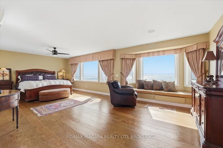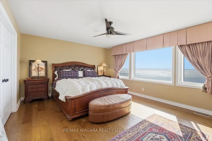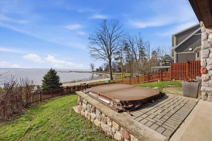 +"PublicRemarks": "Imagine waking up to the sound of the waves in this custom-built home, where refined design meets the serene beauty of the water. Tucked away on a private road in one of Ridgeway's most coveted pockets, this retreat offers the perfect balance of high-end design and total relaxation. The 350-foot lot provides a sense of seclusion that is hard to find.The home welcomes you with a grand two-story entryway featuring heated stone floors that flow into an open living space.With nine-foot ceilings, crown molding, and engineered hardwood, the main level feels both sophisticated and warm.The heart of the home is a gourmet kitchen, complete with a classic farmhouse sink stainless steel appliances, a large island with a veg sink and Corian countertops.On evenings, you can retreat to the living room to enjoy the wood-burning fireplace or step out to the screened-in cedar deck for a sunset BBQ overlooking the water.Designed with both current luxury and future flexibility in mind, one of the main floor pantries is already plumbed for a bathroom, offering a seamless option for a main-floor primary suite.Upstairs, the current primary is an impressive escape with a wall of windows offering breathtaking lake views.The primary also features a spacious walk-in closet and an ensuite that will take your breath away. The lower level adds even more room to unwind, with a cozy family room with a gas fireplace that walks out to a concrete covered patio and a built-in hot tub, all with full lake views.Every detail has been considered, from the whole home speaker system and convenient laundry chute to the laundry room that is currently electric but already fitted for gas.Modern peace of mind includes a furnace and air exchanger both updated in 2021.Outside, the low-maintenance designer gardens lead you through a fenced yard directly to the water's edge.This is a rare opportunity to own a piece of the shoreline that is as functional as it is breathtaking. Luxury Certified"