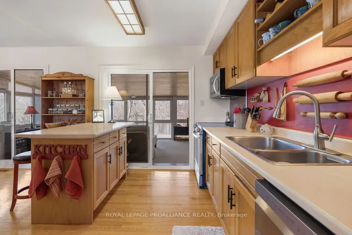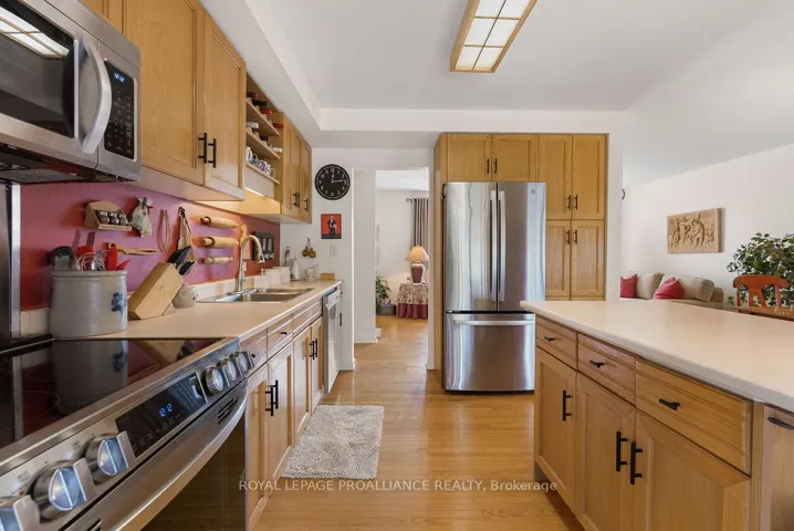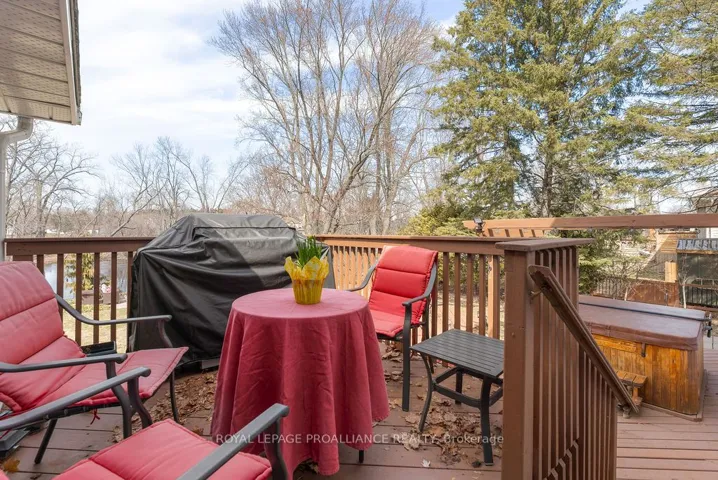 +"PublicRemarks": "Welcome to 38 Greenfield Park, where peaceful waterfront living meets everyday comfort in one of Belleville's most desirable neighbourhoods. Tucked away on a quiet cul-de-sac with minimal traffic, this beautifully maintained home offers a rare chance to unwind along the scenic Moira River. Step inside to a spacious front landing with a convenient 3-piece bathroom and direct access to the attached two-car garage, complete with a workbench and ample cabinetry, perfect for DIY projects or hobbyists. The main level welcomes you with a bright, sun-filled living room, where a large bay window creates a warm and inviting space to gather. It flows effortlessly into the country-style kitchen, featuring classic oak cabinetry, plenty of storage, and a dining area made for easy, everyday living. Just off the kitchen, the insulated sun-room is a space you'll never want to leave, complete with a new glass door and heat pump for year-round comfort, all while overlooking the backyard and tranquil river beyond. Upstairs, you'll find three comfortable bedrooms and a 4-piece bath. Beautifully preserved original hardwood runs throughout both the main and upper levels, adding timeless character and warmth to the home. The fully finished lower level offers a cozy retreat with a gas fireplace, perfect for movie nights or quiet evenings with a book. Outside is where this home truly comes to life. Mature landscaping with perennial gardens and hard wood trees, provide a polished and mature look to the property A multi-tiered deck with hot tub invites you to relax, while the patio and gazebo by the water's edge set the scene for peaceful mornings and unforgettable summer evenings. A solid cement dock makes it easy to enjoy everything waterfront living has to offer, and mature trees create a private, natural escape in the warmer months. Just minutes to Belleville, great golf, and Harmony Public School, this is more than a home, it's a lifestyle you'll look forward to every single day."