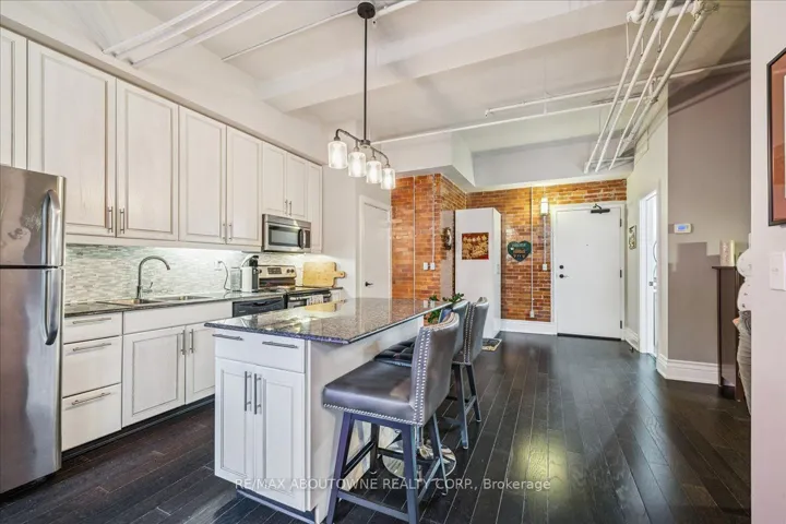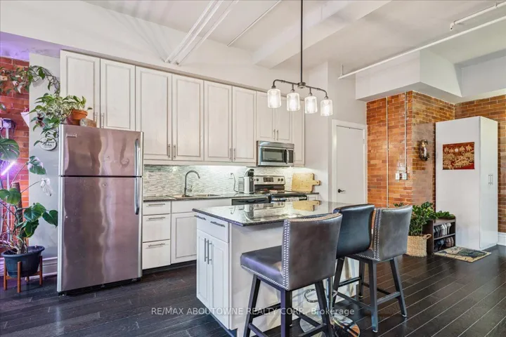 +"PublicRemarks": "Charming loft-style condo in the heart of Hamilton, set within a beautifully converted schoolhouse dating back to 1894 and rich in architectural character. This spacious open-concept one bedroom, one bathroom offers an ideal blend of historic charm and modern updates. Featuring soaring 10' ceilings, large windows that flood the space with natural light, and glazed ceramic exposed brick accents, this carpet-free unit exudes warmth and style. The designer kitchen is complete with a centre island, granite countertops and stainless steel appliances which flows seamlessly into the living area. A versatile additional flex space offers the opportunity for a home office, den, library or separate dining area. Additional highlights include in-suite laundry, a renovated four-piece bathroom and hardwood flooring throughout. Perfect for professionals, first-time buyers, or downsizers. Conveniently located just minutes from the city centre with easy access to highways, transit, and a wide range of amenities. Don't miss it!"