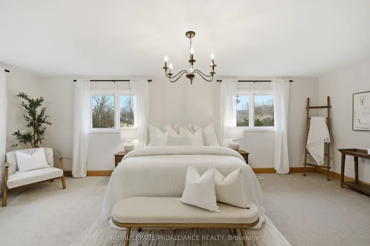+"PublicRemarks": "Welcome to your own private slice of the country. Set on a breathtaking 3.64-acre treed lot with panoramic views of rolling hills and open fields, this sprawling 2,282 sqft bungalow offers the space, privacy, and lifestyle buyers are looking for. The classic stone-front home features an attached double garage, along with both front and rear porches where you can relax and take in the natural surroundings. Equipped with a backup generator for added peace of mind, this home is perfectly suited for comfortable country living year-round. Inside, the heart of the home is the expansive family room, stretching over 26 feet wide, ideal for entertaining or unwinding with family. It flows seamlessly into a bright, functional kitchen with ample cabinetry, a centre island, and a dedicated breakfast nook overlooking the property. A separate living room and dining area provide additional space for hosting, offering a layout that balances open-concept living with defined, practical spaces. The main level features three generously sized bedrooms, including a spacious primary retreat with a walk-in closet and private 3-piece ensuite. Two additional bedrooms are well positioned near a full bath, with one easily functioning as a home office or den. Main floor laundry, a2-piece bath, and direct access to the garage add everyday convenience. The walkout basement extends the living space with large rec and family rooms, an additional bedroom, a 3-piece bath, and a walk-in closet, making it ideal for in-laws or extended family. Located just minutes to Warkworth, 20 minutes to the 401, and 30 minutes to Cobourg, this property offers a peaceful rural setting without sacrificing accessibility."