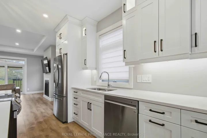 +"PublicRemarks": "Spacious newer five bedroom three full bath home situated on a premium lot built by a quality local builder featuring 9 ft ceilings, two gas fireplaces covered front porch & large foyer walk in closet. Stunning kitchen with lots of cabinets to the ceiling with crown moulding & interior lights, under valence lighting, large island, quartz counter tops, coffee bar, low maintenance laminate flooring throughout, living room has coffered ceiling with 9 ft patio door to covered deck, primary bedroom with large walk in closet & stunning ensuite bath with glass & tile shower double sinks & quartz - plus lots more! 5 mins to 401 & shopping, 10 mins to CFB Trenton, Marina, YMCA & Prince Edward County. Great value for this large home on a premium lot with a quick closing possible!"