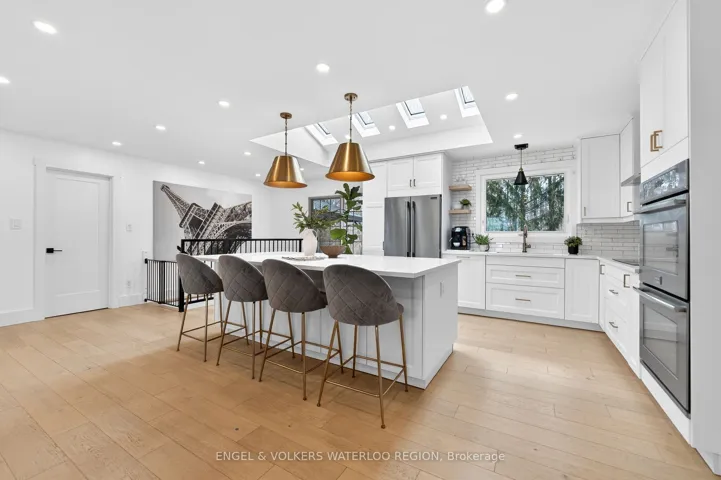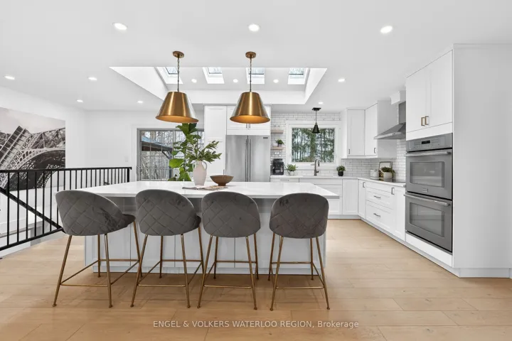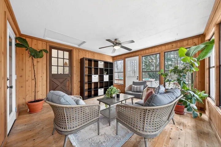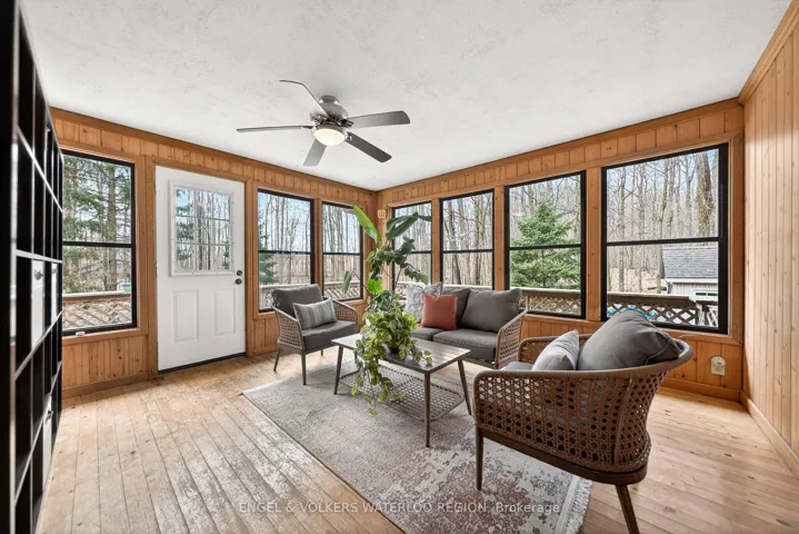 +"PublicRemarks": "*** Just 1 km west of Waterloo and less than 5 min to Costco & Ira Needles Blvd *** A picturesque 6.8-acre mature treed lot , this beautifully updated bungalow offers the perfect blend of modern finishes and peaceful country living. With over 4000 sq ft of living space, meticulously renovated from top to bottom, the home features a bright and welcoming foyer, a stylish open-concept layout, and high-quality upgrades throughout. The formal living and dining areas showcase elegant finishes, while the contemporary kitchen with breakfast area flows seamlessly into the spacious family room-ideal for everyday living and entertaining. The main floor offers three generously sized bedrooms and two bathrooms, all designed with comfort and functionality in mind. Enjoy stunning west-facing views from the expansive deck or relax year-round in the charming three-season sunroom, surrounded by nature. The fully finished walkout basement adds incredible versatility, featuring a large recreation area with abundant natural light, an additional bedroom ( currently being used as Games-room ideal space for extended family or guests ) , a full bathroom, and an office. Additional features include a workshop, laundry area, and ample storage. Surrounded by a beautiful mix of mature trees, this private and serene property is truly a rare find-offering turnkey, move-in ready living just minutes from the city."