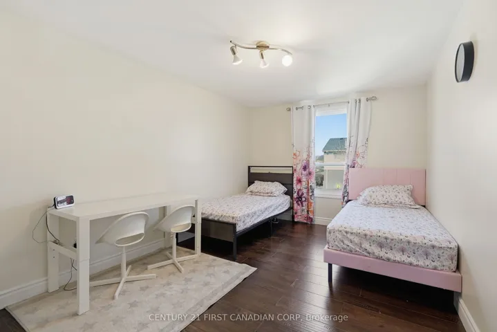 +"PublicRemarks": "LOW CONDO FEES | WELL MAINTAINED UNIT | GREAT OPPORTUNITY FOR FIRST TIME HOME BUYERS, NEW BEGINNING BUYERS, OR INVESTORS LOOKING FOR VALUE IN BYRON. The well-appointed 2 bed, 2 bath condo offers 1,325 sq.ft of total finished living space including the finished basement. Located steps from Northview Public School and a short walk to Springbank Park/Storybook Gardens, you're in a premium location with easy access to the 401/402. As you enter the condo complex, you'll notice mature trees, well-maintained grounds, a large green space, a beautiful in-ground pool and a tennis/pickleball court. Enjoy one dedicated, well lit outdoor parking spot approx. 50ft from your front door (spot #44) and ample first come first serve visitor parking for a second vehicle. This unit is positioned near the back of the complex, benefitting from added privacy and limited traffic. Enter into the main level, featuring newer luxury vinyl plank flooring (2022). Step outside to a private, fully fenced patio with a gate for ease of coming and going to the common areas. Upstairs you'll find two bedrooms, including a spacious primary with an impressive amount of closet storage and a cheater 4-piece ensuite to the main bath. The finished lower-level rec-room stretches 23 feet, creating the perfect entertainment retreat, playroom, or flexible space. Condo fees are very reasonable $325/month and cover building insurance, parking, lawn & common area maintenance, and snow removal. Owners enjoy being close to Byron amenities, Tim Hortons, restaurants, Boler Mountain, golf, and major transportation routes. Built in microwave (2025), Furnace/AC (2016). Pets permitted! Select photos are virtually staged and are not an exact representation."