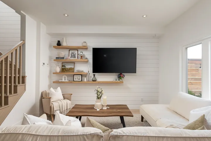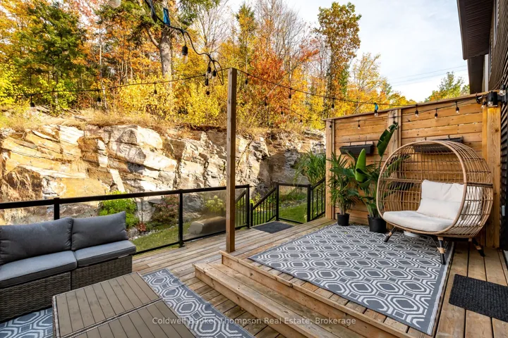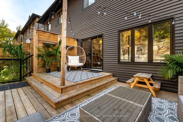 +"PublicRemarks": "This end-unit townhouse combines comfort, style, and convenience in a sought-after location. A private paved driveway and covered porch entry welcome you, with the neutral exterior palette of stone and vinyl adding timeless curb appeal. Inside, a spacious foyer with a large closet and direct access from the single-car garage creates a practical entry point. The open-concept main floor blends living, dining, and kitchen spaces, designed for everyday living and entertaining. The kitchen features quartz countertops, a generous island with breakfast bar seating, floating shelves, and shiplap accents that continues in the living room for a modern touch. Sliding doors lead to a spacious deck overlooking the beautiful rockscape behind the home, offering a peaceful and private outdoor retreat. Upstairs are three bedrooms, including a primary suite with walk-in closet and a 4-piece ensuite complete with a soaker tub and separate glass shower. Two additional bedrooms share a well-appointed 4-piece bathroom, while the laundry is conveniently located on this level. The lower level provides great storage options for your needs. On full municipal services including natural gas, water, sewer, and high-speed internet, this home ensures convenience and efficiency. With quick access to Highway 11 for commuting and just minutes to downtown for shops, dining, and amenities, this property is an ideal blend of modern living and prime location."