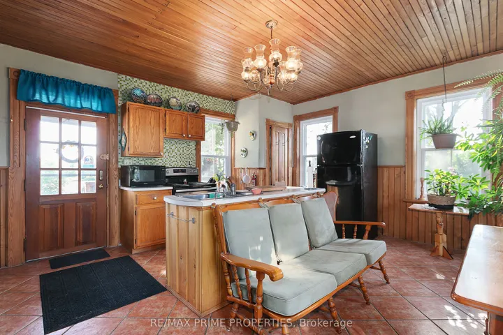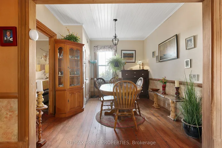 +"PublicRemarks": "Explore this beautifully updated home with peaceful surroundings with a stunning view. Built in 1885, this Victorian residence offers spacious comfort with 4 bedrooms and 3 full baths. All 3 washrooms have been redone with pine finishes. The master bedroom, a cozy sitting room, and two of the baths also feature stunning pine finishes. The kitchen is adorned with ceramic tile, and the original pine floors extend throughout the house. Recent upgrades include a new propane furnace and a new water softening system, and porches redone, a updated septic tank, new windows on both levels all in 2023, and metal shingled roof. A charming wood-burning stove, with extra split wood. The fully landscaped yard, featuring perennials and flowering shrubs, creates a private oasis surrounded by farmland. Amenities include a large dog run, a small barn, quick access to the 417, a double garage, and a workshop. Propane furnace upgraded 2024, Flooring: Softwood, Tile"