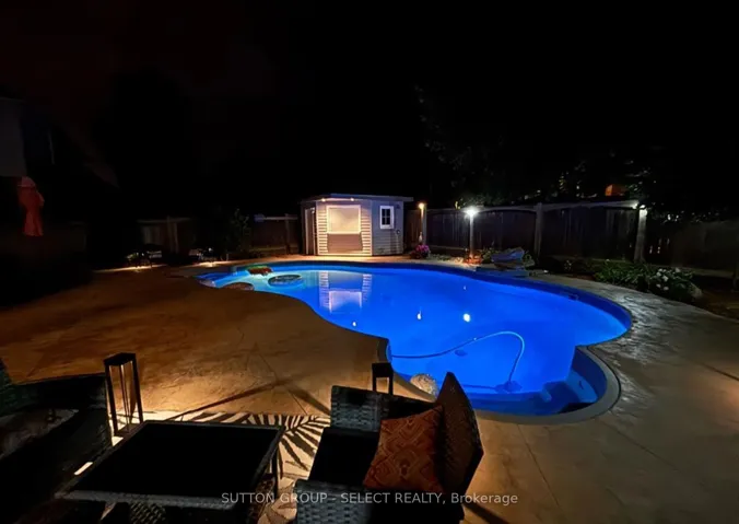 +"PublicRemarks": "A very rare find. Set on a private, quiet, south-facing lot atop of the uplands with mature trees, this home offers a true resort-style backyard featuring a large saltwater pool (updated pump, heater, chlorine generator, and new cover), low-maintenance landscaping, stamped concrete patios, solar lighting, and a fully renovated cabana with bar, shower, and bathroom-perfect for summer entertaining and privacy. Inside, soaring ceilings, elegant and modern chandeliers, and walls of windows flood the great room with natural light, creating an immediate impression. The kitchen sits at the heart of the home, offering stainless steel appliances, extensive cabinetry, and a centre island, seamlessly connecting to the family room and backyard. Upstairs, four generous bedrooms include a spacious primary retreat with ensuite and walk-in closet. The finished basement adds flexibility with a bonus room, full bath, storage rooms, and a bright rec space, ideal for guests, teens, or a home office, with additional room for a gym or workspace. The professionally finished garage is truly one of a kind, designed for both function and style, with premium flooring, suspended storage, beautifully designed shelving, and automated bike storage. Recent upgrades include a premium metal roof with 50-year guaranteed performance, advanced fully sealed sump system, along with smart home features such as a 4th-gen Nest thermostat, Bluetooth keypad entries, and app-controlled garage access with integrated cameras, and many more. Located close to parks, Masonville amenities, and within the highly sought-after Jack Chambers Public School catchment, this meticulously maintained home delivers an exceptional balance of lifestyle, space, and setting."