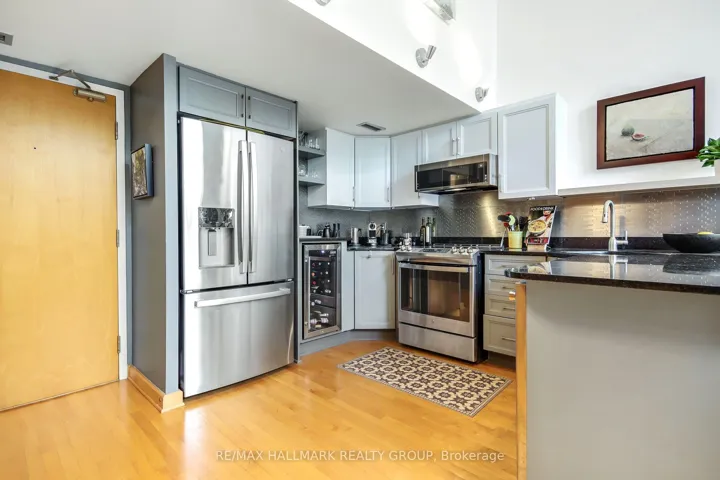 +"PublicRemarks": "You'll be impressed by this magazine-worthy, fully renovated 2-bedroom corner condominium suite. Bright and inviting, this home welcomes you the moment you arrive. The stunning custom kitchen features floor-to-ceiling cabinetry, soft-close drawers, under-cabinet lighting, a stylish tile backsplash, and stainless-steel appliances. It opens seamlessly into the living and dining areas, complete with patio doors leading to your private balcony-perfect for enjoying breathtaking sunsets and unwinding at the end of the day. Neutral wide-plank flooring runs throughout the principal rooms, creating a cohesive and modern aesthetic. Both bedrooms include redesigned closets with custom organizers for optimal storage. The beautifully renovated bathroom offers a tub/shower combination, custom vanity, updated fixtures, and tile flooring. Additional highlights include a convenient utility room for extra storage and an exclusive-use parking space. Outdoor enthusiasts will love having the Rideau Trail just steps from the building. Ideally located on public transit routes, close to schools, and surrounded by everyday amenities-this is a home that truly has it all."