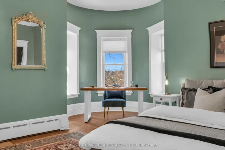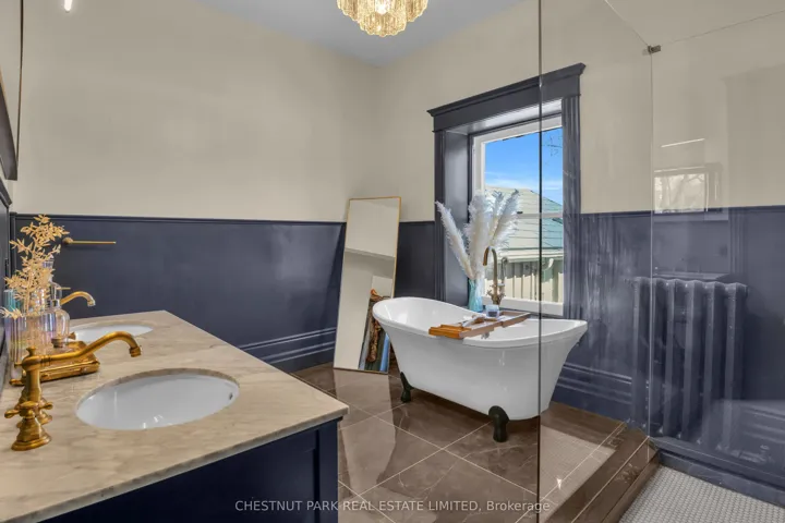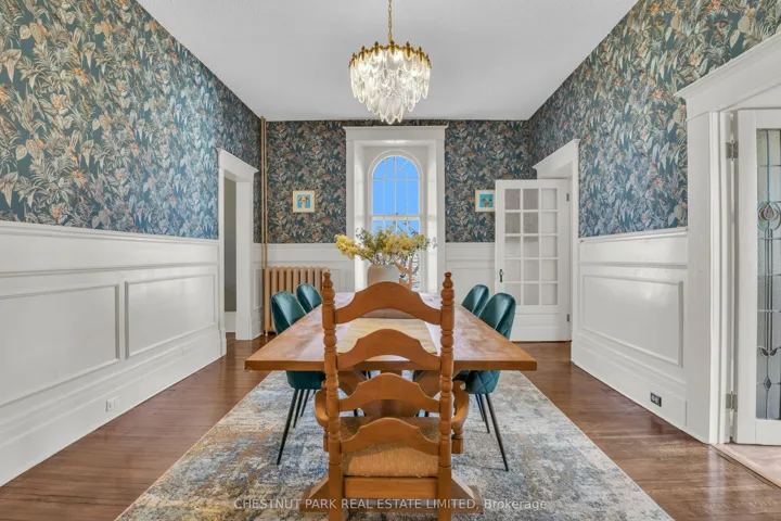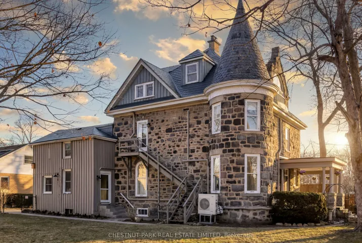 +"PublicRemarks": "Built in 1859 by Thomas and James Dalgleish, master stone masons whose hands shaped much of Galt's enduring character, 54 Bruce St. is a home with a story to tell. Recently added to Cambridge's Heritage Registry, this three-storey stone residence carries the kind of presence that stops you mid-step. The arched window openings, the original woodwork, the deep stone walls; every detail speaks to a time when homes were not assembled but crafted, built from materials meant to last by hands that understood both structure and beauty. At 4,780 sq ft with 6 bedrooms and 5 bathrooms, the home offers space & substance in equal measure. Over $200,000 in thoughtful renovations since 2022 have addressed the essentials, including a full electrical upgrade replacing knob and tube, updated plumbing, new air conditioning across three floors, refinished hardwood, and a fully renovated European-style kitchen with custom cabinetry and new appliances. These are not cosmetic gestures; they are the kind of improvements that allow the next owner to settle in with confidence. Two wood-burning fireplaces anchor the main living spaces. Stained glass, pocket doors, and period detailing remain intact throughout. A self contained third floor suite, includes its own kitchen, bathroom, separate entrance, and a private sunroom off the bedroom. Whether for extended family or simply space to live and grow, it offers a level of flexibility rarely found in heritage homes. Outside, the generous lot is fully fenced with mature trees, two covered porches, and a large 2-car detached garage. A five-minute walk to Galt's vibrant downtown, farmers' market, and the Grand River. A heritage dossier by architect Eric Rodrigues, Founding Principal of Boldera Architecture, accompanies the listing, offering prospective buyers both an understanding of the home's architectural significance and a thoughtful roadmap for its next chapter. This home has endured for over 160 years. The next chapter is ready to be written."