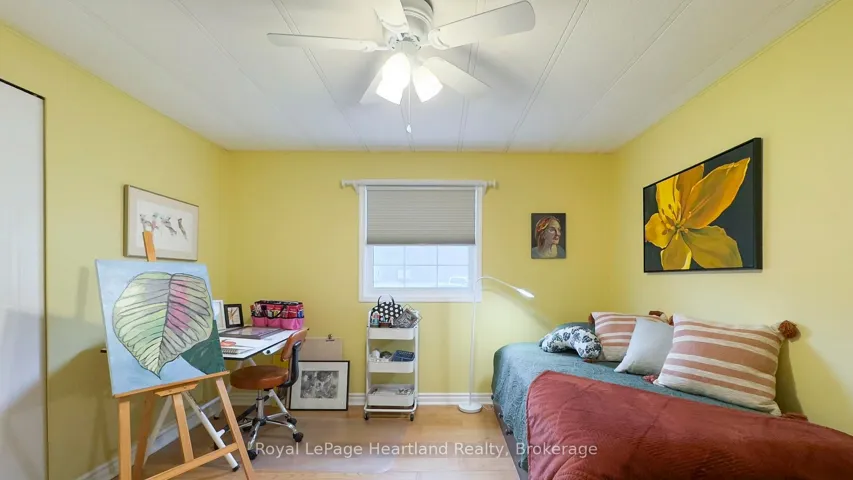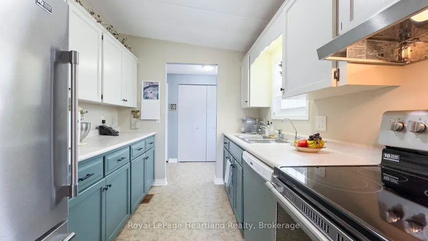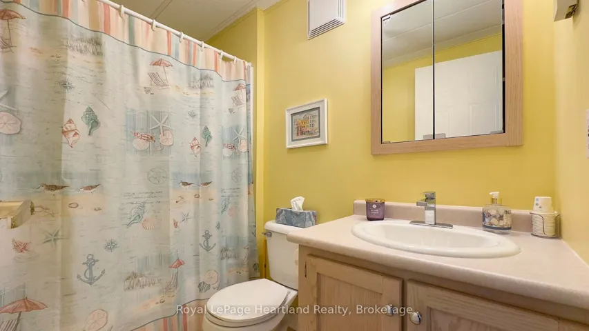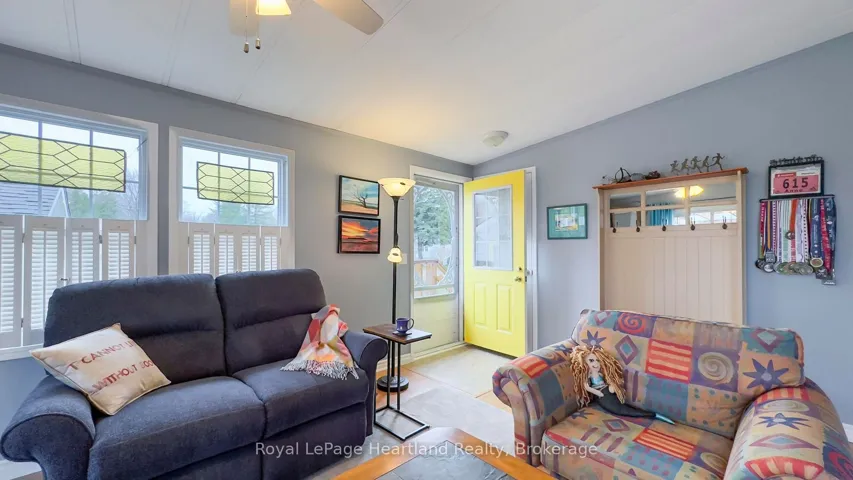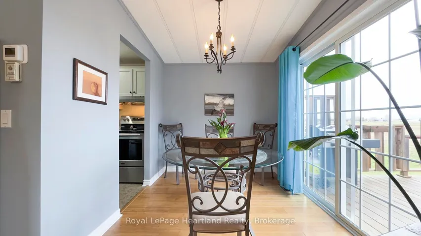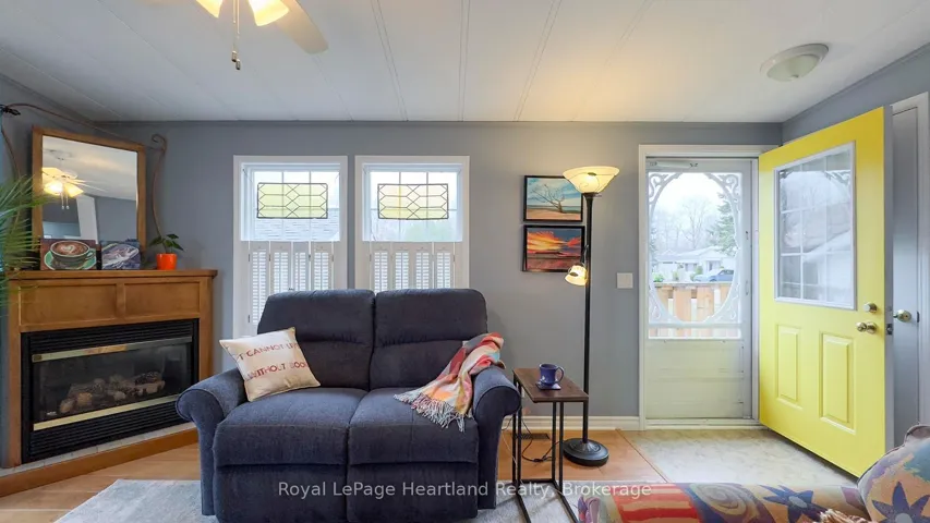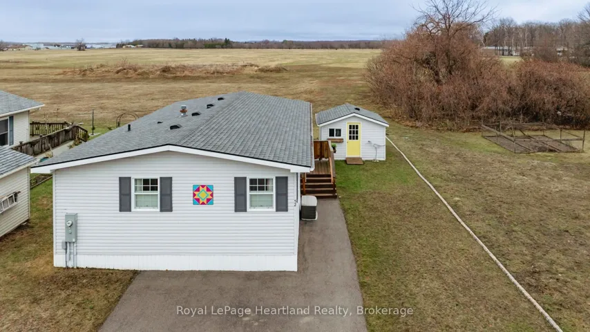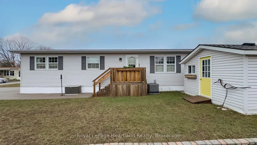 +"PublicRemarks": "Welcome to this affordable, well maintained home located in Northwood Beach Resort, 55+ adult lifestyle community. Minutes from the Village of Bayfield where you will find great restaurants, shopping, marina, sandy beaches & a golf course right across the road. This up-to-date home has a spacious entrance/sitting area with a new gas fireplace, a bright eat-in kitchen that opens to a cozy living room. The primary bedroom with built-in cabinets, a large clothes closet and patio doors that lead to a large deck is a great spot for morning coffee. A second bedroom also opens to the deck, doubles as a functional storage room with an optional built-in single bed, great for an overnight guest. The lovely backyard is lined with mature trees ensuring privacy, perennial gardens surround the brand new grey concrete slate walkway and the new black privacy fence on the large deck is the perfect space for summer entertaining. A new 10'x12' insulated shed with electricity and an extra garden shed provides plenty of storage. Northwood Beach offers a beautiful updated community centre, large outdoor pool & amazing sunsets at the lakeside park. If downsizing, low maintenance & lakeside living are what you are looking for, this is the home for you!"