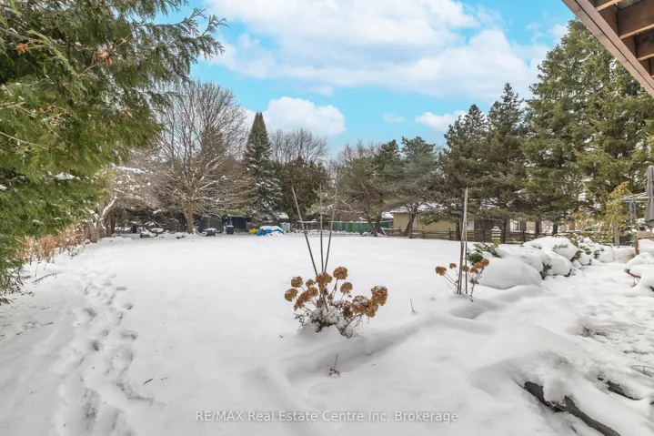 +"PublicRemarks": "Beautiful Raised Bungalow on a Half-Acre Treed Lot This beautifully updated raised bungalow is nestled in a quiet small town just minutes from Fergus and Guelph, offering the perfect blend of country charm and city convenience. Featuring 3+1 bedrooms, 2 baths, and an inviting open-concept design, this home is brightened by a skylight and accented with hardwood floors. The finished basement includes a walkout and a cozy rec room warmed by a wood stove-an ideal space for family gatherings or peaceful evenings in. Step out from the primary bedroom balcony and take in views of the spacious half-acre treed lot, complete with a patio and gazebo for outdoor enjoyment .A steel roof provides durability and peace of mind, while the interlocking driveway adds curb appeal and plenty of parking. The property also includes two oversized storage sheds and an oversized garage equipped with a generator backup panel. If you're looking for a small-town country home not far from the city, this one offers everything you've been waiting for."