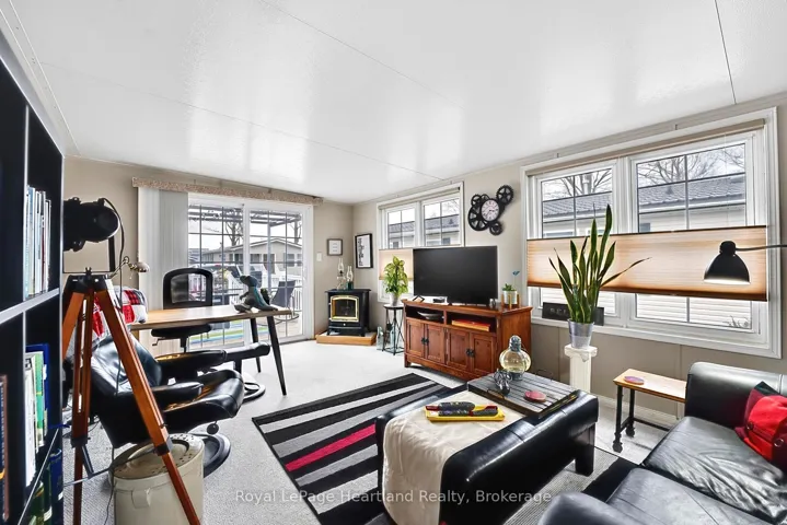 +"PublicRemarks": "Pristine and impeccably maintained, this charming home is ideally located just minutes north of Goderich along the beautiful shores of Lake Huron. Offering 2 bedrooms and 1 bathroom, this move-in ready property features an inviting open-concept eat-in kitchen lined with crisp white cabinetry and lots of space for those who love to bake or cook. The bright, sun-filled living room is the perfect space for gathering with family and friends. A spacious four-season addition expands the living area, complete with patio doors leading to an east-facing deck, the ideal spot to enjoy your morning coffee or step out to the backyard private patio with ease through the back door. The property also includes a large shed with electricity, stunning perennial gardens, and private beach access within the land lease community; Meneset on the Lake where you can soak up hot summer days and take in breathtaking Lake Huron sunsets. Enjoy an active lifestyle with access to a vibrant clubhouse, nearby walking trails, and all the amenities the Town of Goderich has to offer just minutes away."