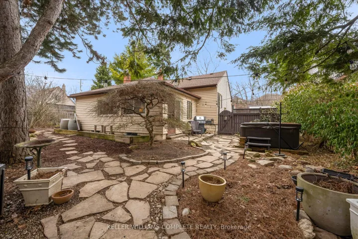 +"PublicRemarks": "UNIQUE ONE-OF-A-KIND HOME! Prime Central Park location within easy walking distance to downtown Dundas, local schools, and a nearby Montessori school, and backing onto a tributary of Spencer Creek, for added privacy and natural views. This beautifully maintained home offers excellent curb appeal with perennial gardens and sits on a mature 75' x 98' lot surrounded by specimen trees, creating a peaceful, Muskoka-like setting. With approximately 1,376 sqft above-grade, pride of ownership is evident throughout. The home features a bright Great Room with a soaring beamed wood ceiling, large windows overlooking the backyard, garden access, and a cozy gas fireplace-making it the perfect gathering space. The updated kitchen offers ample cabinetry and overlooks the Great Room, ideal for entertaining. On the main floor, there are 3 carpet-free bedrooms (hardwood and laminate flooring), including a spacious primary bedroom with a wall of closets (currently used as an art studio/office), large window, and cove ceiling, along with an updated 4-piece bath. The lower level includes an in-law suite with kitchenette, 3-piece bath, cold room, utility/workshop space, and extra large storage area. The fully fenced U-shaped backyard and side yard feature a flagstone patio, raised deck platform, and mature landscaping-your own private retreat. Updates include kitchen, windows and front door, roof (2015), A/C (2018), and crawl space waterproofing (2019). Note: Any updates prior to 2019 were completed by the previous owner. Don't miss the opportunity to own this special character home in an ideal location! Note: This property is in an area regulated by the Hamilton Conservation Authority."
