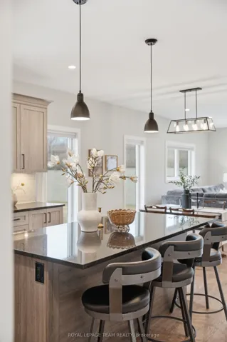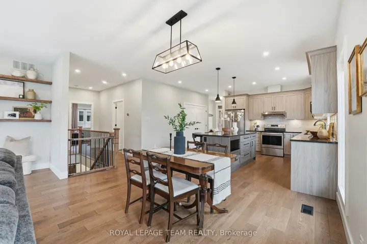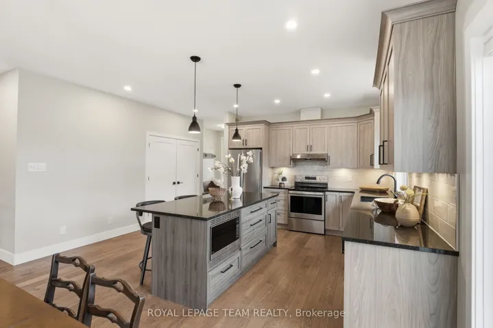 +"PublicRemarks": "Welcome to this thoughtfully designed detached 4 bed, 3 full bathroom bungalow on a family-friendly street in the village of Carp. Built in 2019, this home offers modern finishes & exceptional comfort for today's lifestyle. Step inside to discover 9ft ceilings throughout, including the fully finished basement. The main floor has an effortless flow & showcases elegant engineered hardwood flooring throughout. The bright, open-concept living space is anchored by a gas fireplace w/ custom shelving & mantle. Just off the living room is the dining room & stylish kitchen w/ granite countertops, soft-close cabinetry, backsplash, & pantry. This level has 3 bedrooms, 1 being a primary retreat w/ walk-in closet & 3-piece ensuite w/ a glass shower, granite countertop & in-floor heating. This level is complete w/ 2 more bedrooms, a 3 piece family bathroom w/ granite countertops & tub then down the hallway is a convenient main floor laundry room w/ sink & access to the 2 car heated garage which adds everyday practicality. Down the hardwood stairs w/ upgraded banister & spindles, the finished basement (2024) extends your living space w/ another large bedroom, 3 piece bathroom, 3 storage closets (1 w/ barn door) & a large rec room w/ laminate flooring & pot lights throughout. The basement is also roughed-in for radiant floor heating. Enjoy outdoor living on the back deck through the patio doors just off the living room, complete w/ a roughed- in natural gas BBQ hookup. Additional features include window covers on majority of windows, double car garage w/ natural gas heater & side entrance, smart thermostat & a well-equipped utility room w/ work bench, large cold storage, HRV, owned hot water on demand & 200 amp service. Located just a 2 minute walk from a park & all of Carp's favourites like Ridge Rock, Carp Creamery, Alice's Cafe, Twin Muses & the Carp Fairgrounds, this is a wonderful opportunity to enjoy modern bungalow living in a welcoming community."
