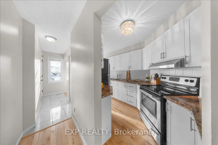 +"PublicRemarks": "Move-in ready executive stacked townhouse in sought-after Convent Glen / Chapel Hill. This 2 bedroom, 2 bathroom home offers a functional layout and unbeatable location within walking distance to public transit, shopping, schools, public library, parks and scenic nature trails. Bright and inviting living room features a cozy gas fireplace and access to a private balcony overlooking the backyard patio. No rear neighbours behind, providing added privacy and a quiet outdoor setting. The renovated galley kitchen is well-appointed with stainless steel appliances, ample cabinetry and great workspace for everyday living. Both bathrooms have been tastefully updated, adding modern appeal throughout the home. Well maintained and move-in ready, this property is ideal for first-time buyers, downsizers or investors looking for a turnkey opportunity in a convenient, family-friendly neighbourhood."