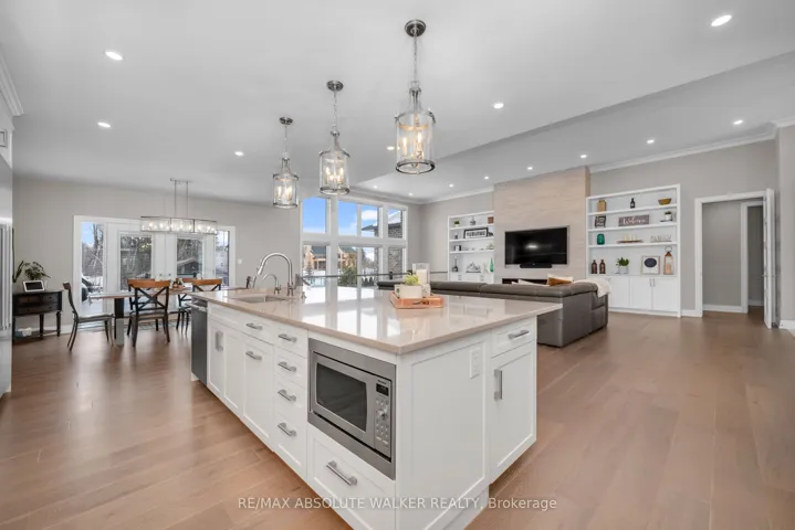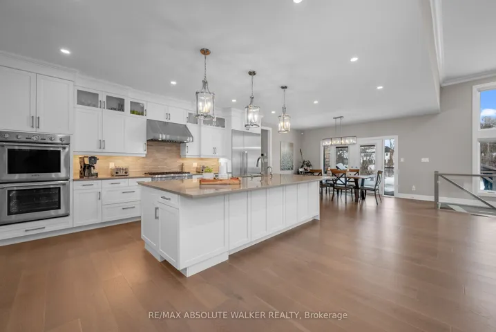 +"PublicRemarks": "Step into this stunning custom John Gerard bungalow, featuring an expansive 3400 sqft of main-floor living space, enhanced by over 2000 sqft of beautifully finished basement. Exuding luxury and sophistication, this full brick residence is adorned with high-end finishes throughout. The main floor showcases, timeless trim work, elegant hardwood floors, tile, and soaring ceilings ranging from 9 to 12 feet, contributing to the home's grand ambiance. A fully functional main floor laundry room and pantry room offer convenience, while four spacious bedrooms (one currently used as an office) on the main level, along with a fifth bedroom and full washroom in the basement, accommodate families of all sizes.The gourmet kitchen is a culinary delight, equipped with top-tier Thermador appliances, soft-close drawers, and cupboards, and adorned with sleek quartz countertops in the kitchen and all washrooms. The basement is an entertainer's paradise, boasting a large recreation room, wet bar, billiards area, full gym (easily convertible to a sixth bedroom), and ample storage space with direct access to the triple-car garage. The property is situated on an oversized 1.1 acre lot, larger than neighboring properties, and includes a wooded area that ensures privacy and seclusion. This exceptional property perfectly combines style, comfort, and functionality, making it an ideal place to call home."