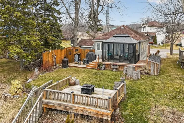 +"PublicRemarks": "Gorgeous Lake Erie waterfront property offering prime west of prestigious Woodlawn Point location & similar distance east of the sea-side community of Peacock Point. Imagine sipping a morning coffee or nursing a late night beverage while savouring Erie's majesty from this incredible "Erie Treasure" incs beautifully renovated year round cottage situated on mature lot. Introduces 735sf of immaculate living space, 735sf finished basement, 264sf lake facing entertainment deck incs enclosed metal gazebo & adjacent 168sf grade level deck - enjoys gentle sloping rear yard extending to waterfront observation deck offering wooden steps descending to paver stone patio built on armour stone break-wall w/removable staircase accessing golden sand beach continuing for hundreds of feet into glistening lake. After a day of aquatic adventures it's time to retreat indoors & embrace nautical ambience of this tastefully presented home highlighted w/open concept kitchen sporting modern cabinetry & dinette - segues to living room ftrs patio door walk-out to deck/gazebo. Impressive 9ft tray ceilings, gleaming hardwood flooring, oversized windows & warm ambience of recently installed gas fireplace compliment décor. 2 sizeable bedrooms & modern 4pc bath complete main level design. Spacious 462sf family room showcases hi/dry basement - perfect venue for large family gatherings or simply a place to relax - completed w/3rd bedroom, utility room & storage room. Notable updates since 2020 inc 100 amp hydro, hot water heater & jet water pump/pressure tank - additional features inc quality appliances, n/g furnace, AC, fibre internet, water cistern, economical septic system (no costly pump outs), exterior vinyl siding, windows, asphalt roof shingles, low profile kayak shed & more. Relaxing 45-50 min commute to Hamilton, Brantford & 403 - 15 min drive to Port Dover's popular amenities - mins west of Selkirk. Versatility Redefined -Stylish Comfort for Year Round Living or Ultimate Weekend Getaway!"